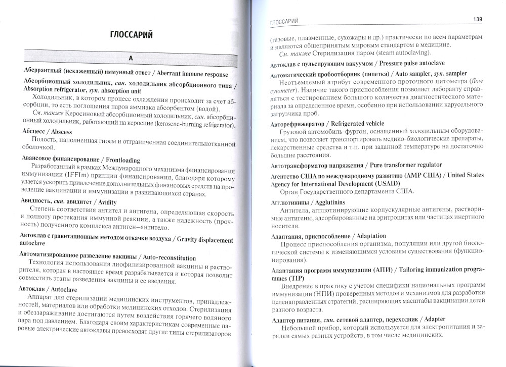 В англо-русский и русско-английский словарь включено свыше 3000 наиболее часто употребляемых в международной практике терминов, словосочетаний и сокращений, принятых в вакцинологии. Словарь адресован в первую очередь специалистам в области вакцино-профилактики, включая научных работников, производителей иммунобиологических препаратов, врачей, медицинских сестер и других медицинских специалистов, непосредственно проводящих прививки и осуществляющих различные мероприятия на всех уровнях вертикали программ вакцино-профилактики. Издание также представляет интерес для работников организаций здравоохранения, курирующих вопросы вакцинопрофилактики, специалистов смежных профессий, переводчиков и редакторов технических текстов, студентов, обучающихся в медицинских вузах.| Издательство | ГЭОТАР-Медиа |