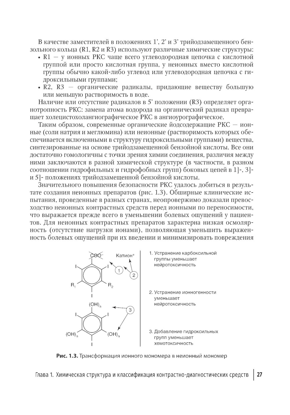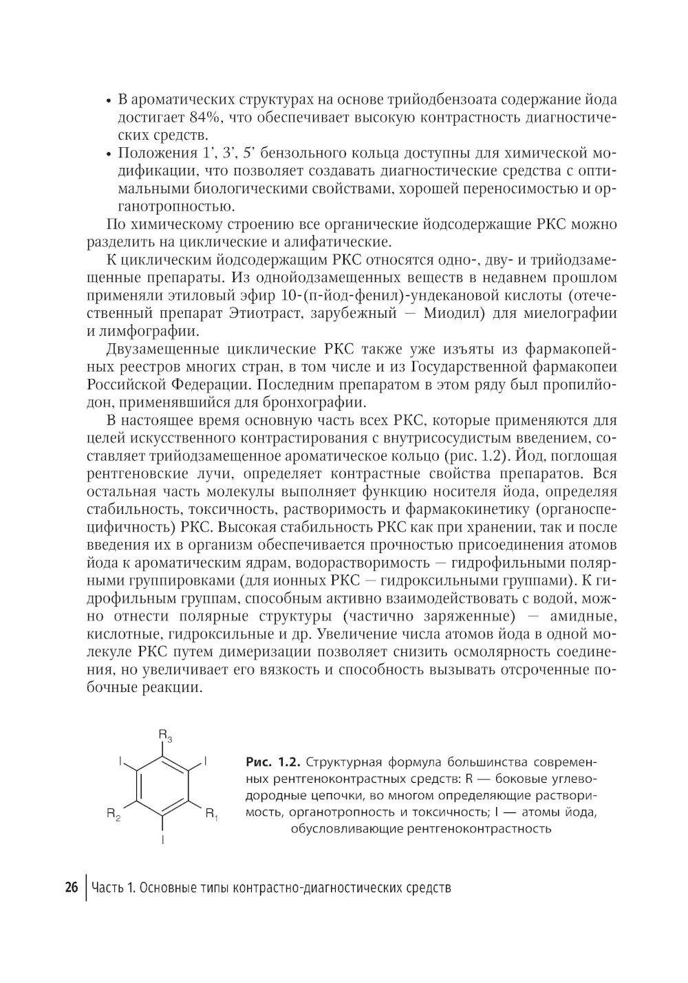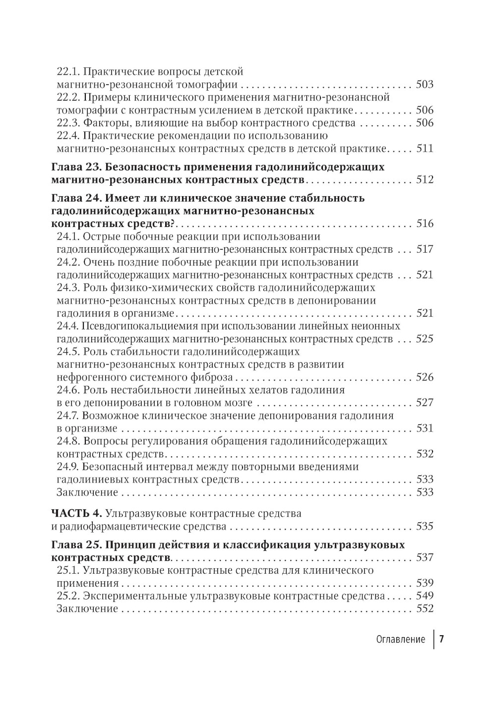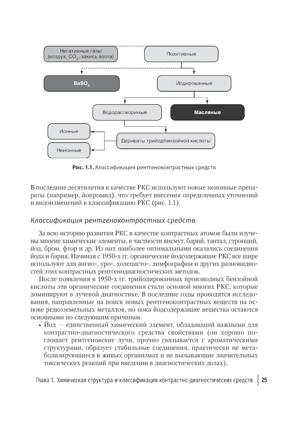 В руководстве рассмотрены методические особенности применения современных контрастно-диагностических средств для повышения эффективности лучевой диагностики. Дана их классификация, основанная на химических свойствах. Изложены современные технологии использования рентгеноконтрастных средств при ангиографии, эндоваскулярной хирургии, компьютерной томографии, экскреторной урографии, миелографии, лимфографии, а также способы их доставки в зону интереса. Описаны физико-химические свойства йодированных рентгеноконтрастных средств и их влияние на возможные побочные реакции. Приведены доказательства преимущества мономерных низкоосмолярных препаратов по сравнению с димерными изоосмолярными средствами, основанные на экспериментальных и клинических данных. Указаны способы профилактики и лечения нежелательных реакций, встречающихся при использовании контрастных средств. Отражены принципы магнитно-резонансной визуализации и применения магнитно-резонансных контрастных средств при диагностике заболеваний центральной нервной системы, в том числе рассеянного склероза, проведения магнитно-резонансной ангиографии, для диагностики заболеваний коронарных артерий и ишемии миокарда, заболеваний почек, суставных повреждений, опухолевых образований молочной железы, матки, яичников и гепатобилиарной системы. Специальное внимание уделено применению препаратов гадолиния в качестве рентгеноконтрастных средств, а также роли стабильности гадолинийсодержащих магнитно-резонансных контрастных средств в депонировании свободного гадолиния в тканях орагнизма, включая головной мозг, и в развитии нефрогенного системного фиброза как крайнего проявления накопления свободного гадолиния при использовании нестабильных препаратов типа гадодиамида или гадоверсетамида. Описаны преимущества использования единственного контрастного средства с двойной концентрацией гадолиния гадобутрола (Гадовиста) и гепатоспец фического средства - гадоксетовой кислоты (Примовиста). Представлена информация об ультразвуковых контрастных средствах и радиофармацевтических средствах. Приведены сведения о фармакоэкономике применения контрастных средств в современной клинике. Книга предназначена лучевым диагностам, хирургам, онкологам и другим специалистам, использующим в своей работе технологии лучевых исследований с контрастным усилением, а также студентам вузов, изучающим тему «Контрастные средства» по программам фармакологии и лучевой диагностики.