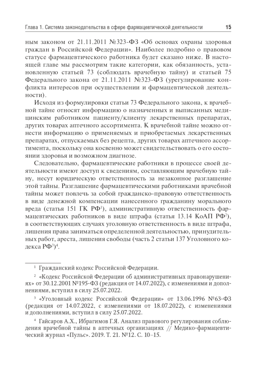 Издание охватывает широкий диапазон правовых аспектов при осуществлении профессиональной фармацевтической деятельности. Проанализированы правовой статус фармацевтического работника, порядок допуска к профессиональной деятельности, права и обязанности, а также законодательные ограничения при осуществлении профессиональной деятельности. Представлен общий порядок правового регулирования оборота лекарственных средств: государственная регистрация, производство и маркировка, порядок оптовой и розничной торговли, хранение и уничтожение лекарственных средств. Особенное внимание уделено анализу законодательства и правоприменительной практики, условиям и порядку наступления юридической ответственности фармацевтических работников. Учебник предназначен студентам медицинских вузов по специальности "Фармация", также будет полезен фармацевтическим работникам, руководителям фармацевтических организаций, организаторам здравоохранения.| Издательство | ГЭОТАР-Медиа |