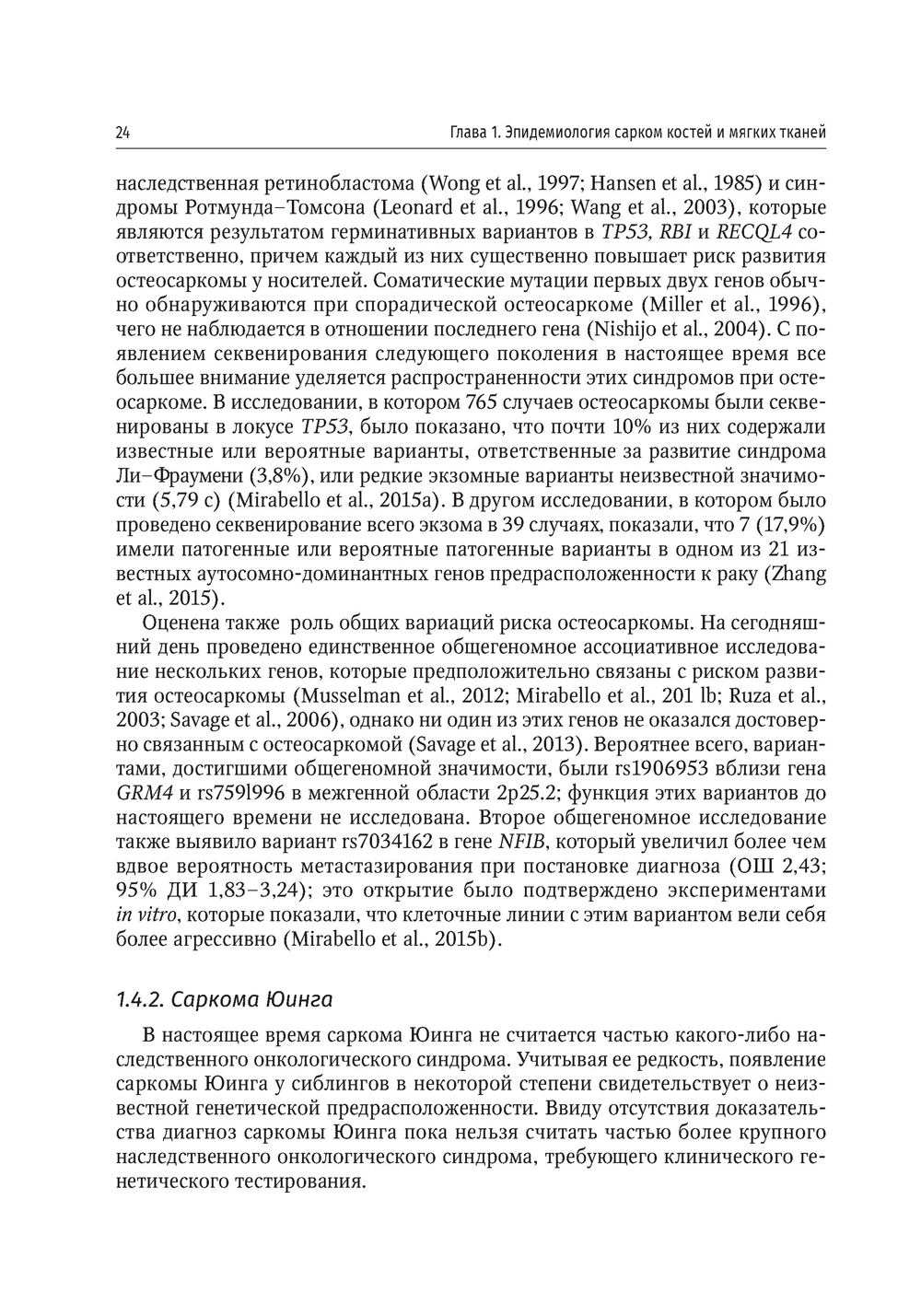 Руководство содержит обзор современных подходов к лечению остеосарком, саркомы Юинга, рабдомиосарком и других более редких заболеваний данной группы. Рассмотрены эпидемиология и диагностика этих патологий. Представлена информация о заболеваниях в историческом аспекте. Описаны патофизиологические механизмы сарком костей и мягких тканей, рассказано об их изучении вне человеческого организма и реконструкции событий, приводящих к образованию опухоли. Издание предназначено врачам - детским онкологам, хирургам и педиатрам, а также представителям фундаментальной медицины в области онкологии.| Издательство | ГЭОТАР-Медиа |