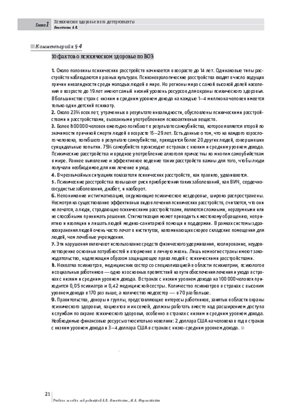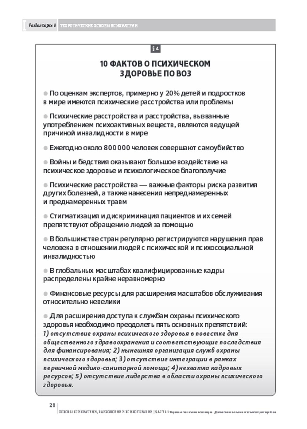 НЕЗАКОННОЕ ПОТРЕБЛЕНИЕ НАРКОТИЧЕСКИХ СРЕДСТВ, ПСИХОТРОПНЫХ ВЕЩЕСТВ, ИХ АНАЛОГОВ ПРИЧИНЯЕТ ВРЕД ЗДОРОВЬЮ, ИХ НЕЗАКОННЫЙ ОБОРОТ ЗАПРЕЩЕН И ВЛЕЧЕТ УСТАНОВЛЕННУЮ ЗАКОНОДАТЕЛЬСТВОМ ОТВЕТСТВЕННОСТЬ. В данном учебном пособии представлена обобщенная информация практически по всем разделам психиатрии, включая теоретические вопросы специальности, общую психопатологию, основные группы психических расстройств, где представлена полная клиническая картина конкретных расстройств (определение, эпидемиология, этиопатогенез, классификация, диагностические критерии, дифференциальная диагностика, лечение), вопросы организации психиатрической помощи, а также актуальная информация об основных группах психотропных средств и методов психотерапии, используемых в психиатрии. Акцент в подаче материала сделан преимущественно на достижениях клинической психиатрии последних десятилетий. Руководство рассчитано на врачей-психиатров, клинических психологов и психотерапевтов, а также может быть использовано в учебном процессе студентами медицинских вузов и психологических факультетов, ординаторами и аспирантами, стажирующимися в области клинической психиатрии.| Издательство | Городец |