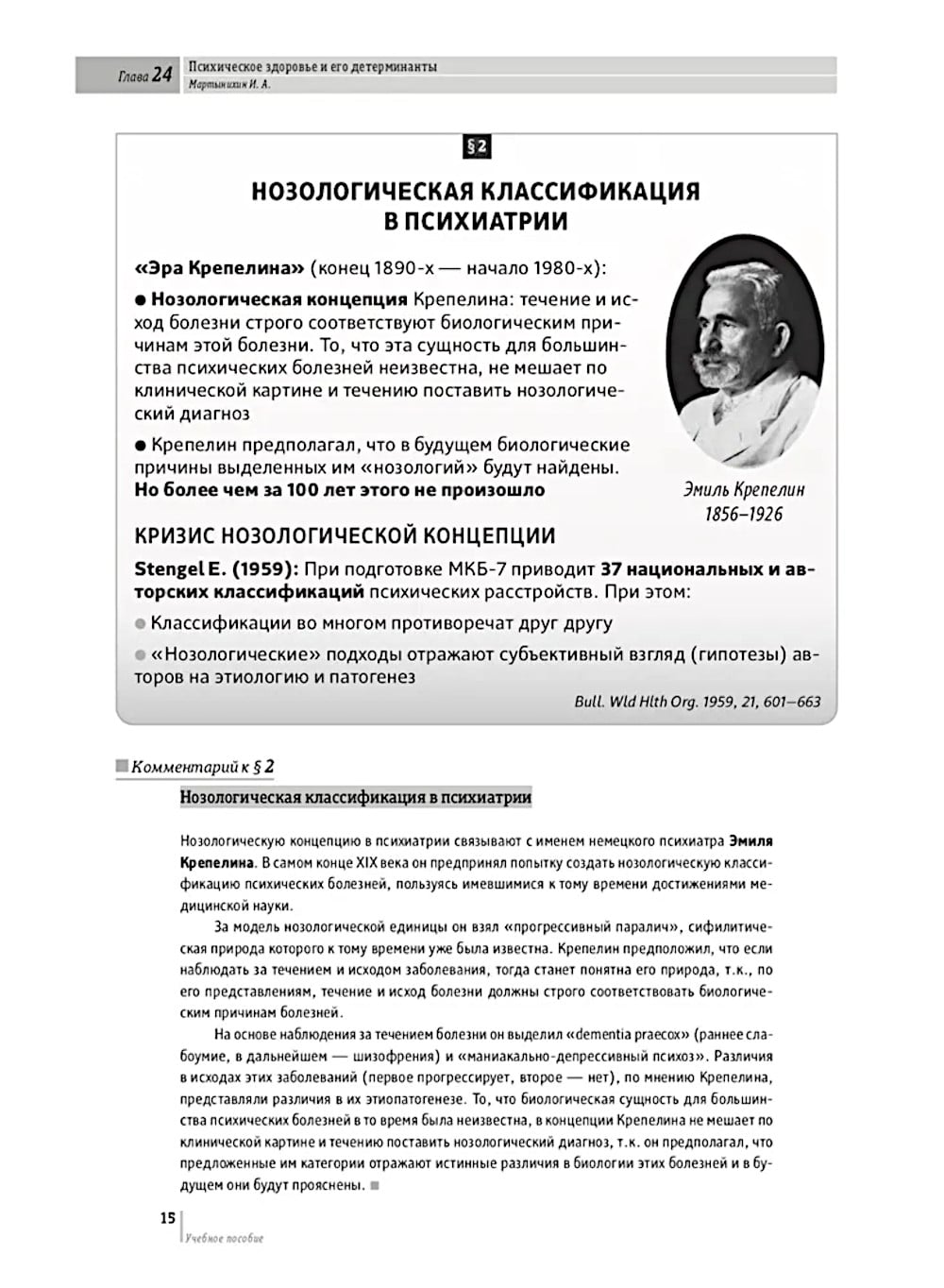В данном учебном пособии представлена обобщенная информация практически по всем разделам психиатрии, включая теоретические вопросы специальности, общую психопатологию, основные группы психических расстройств, где представлена полная клиническая картина конкретных расстройств (определение, эпидемиология, этиопатогенез, классификация, диагностические критерии, дифференциальная диагностика, лечение), вопросы организации психиатрической помощи, а также актуальная информация об основных группах психотропных средств и методов психотерапии, используемых в психиатрии. Акцент в подаче материала сделан преимущественно на достижениях клинической психиатрии последних десятилетий. Руководство рассчитано на врачей-психиатров, клинических психологов и психотерапевтов, а также может быть использовано в учебном процессе студентами медицинских вузов и психологических факультетов, ординаторами и аспирантами, стажирующимися в области клинической психиатрии.| Издательство | Городец |
