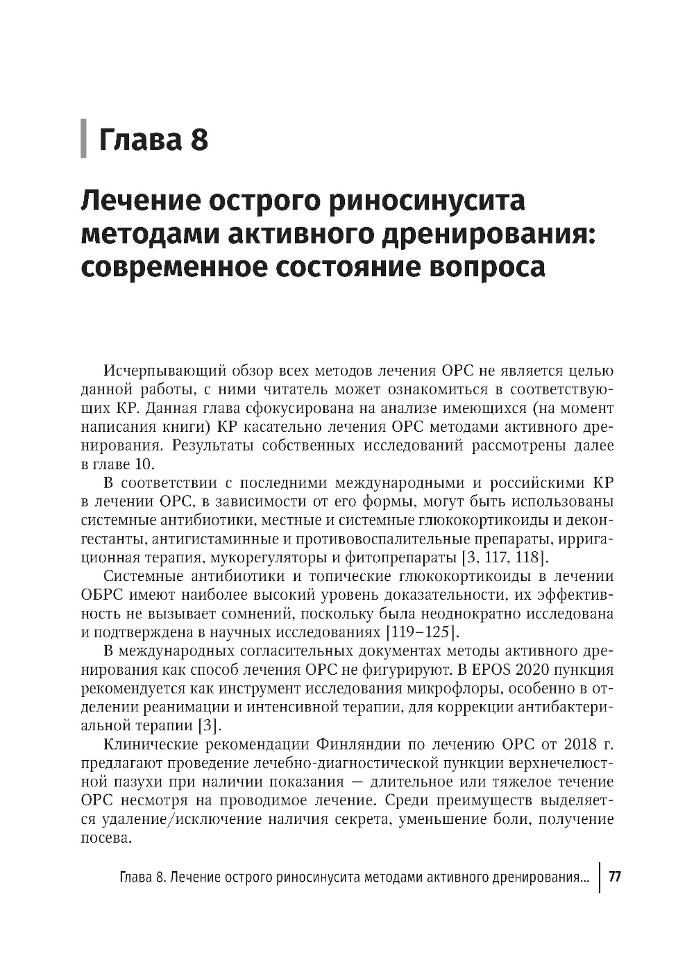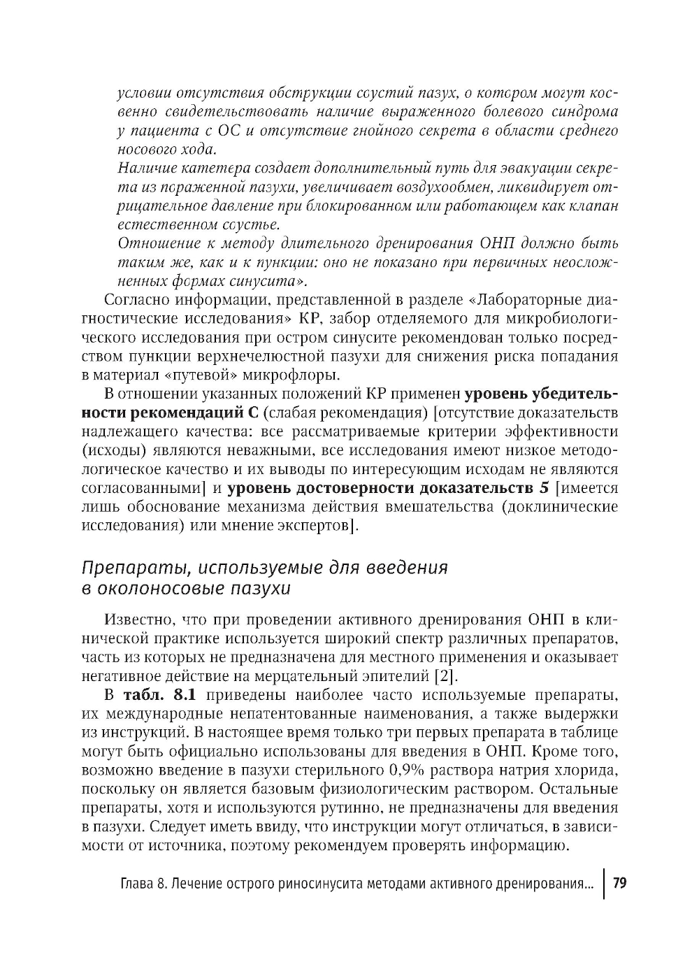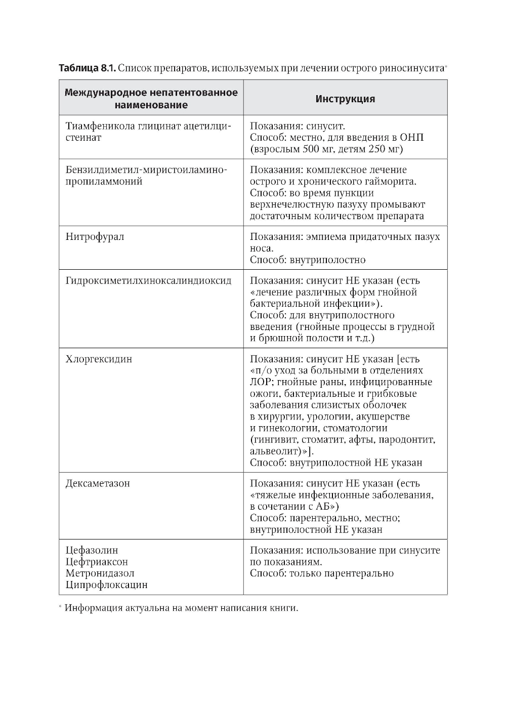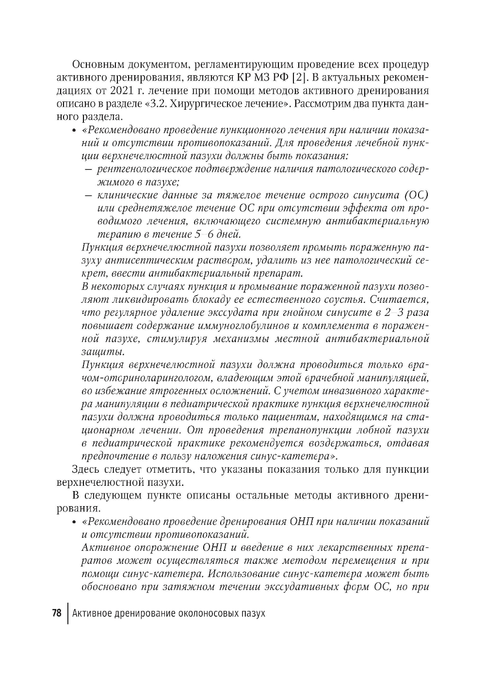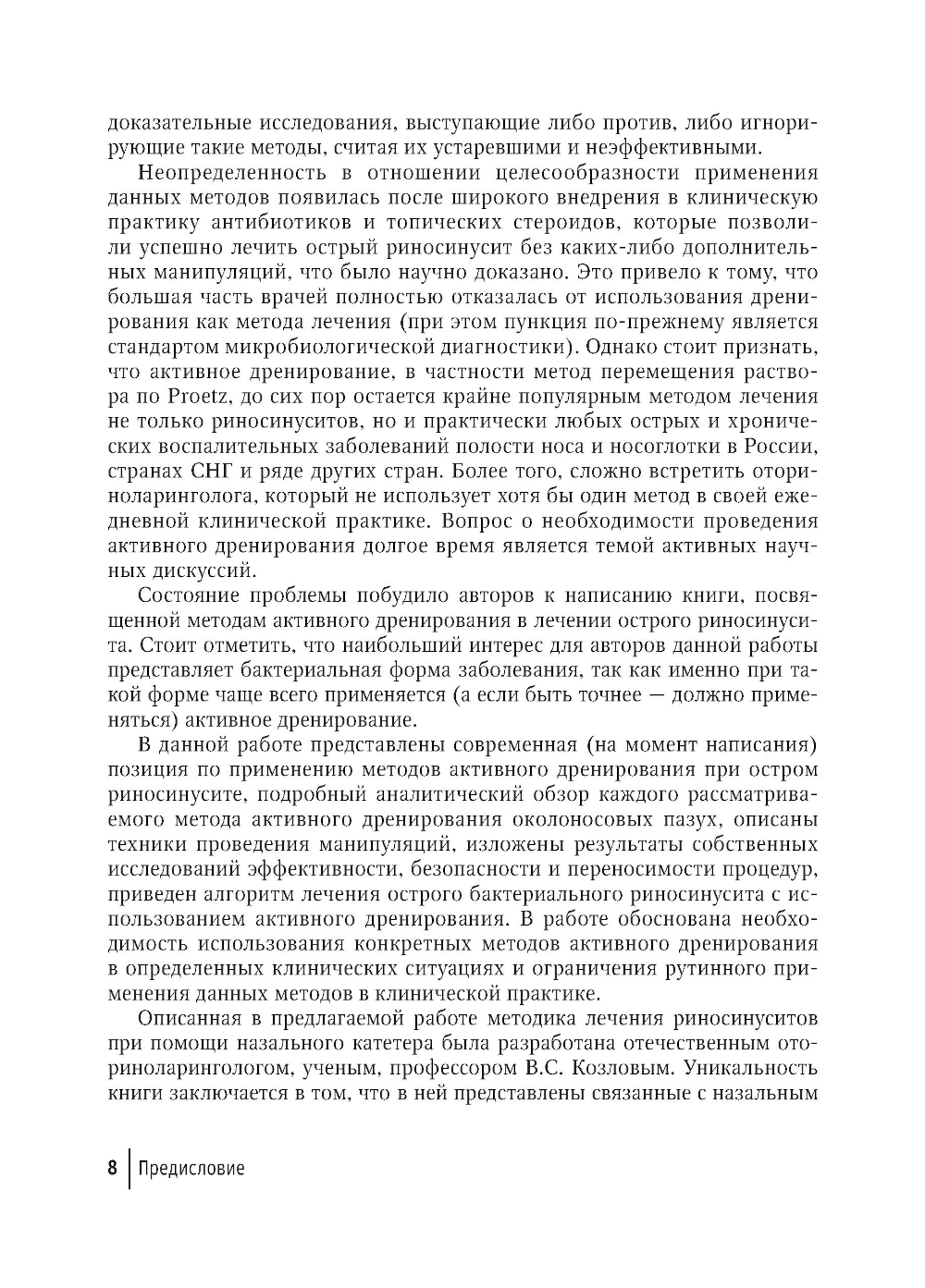 Острый риносинусит - одно из наиболее распространенных заболеваний, оказывающих существенную нагрузку на систему здравоохранения. Одной из проблем при лечении данного заболевания является вопрос о необходимости проведения активного дренирования - эвакуации патологического содержимого из околоносовых пазух и введения в них раствора. Одни согласительные документы поддерживают дренирование, другие считают эти методы устаревшими и неэффективными. Тем не менее дренирование остается популярным в лечении риносинуситов и других воспалительных заболеваний полости носа и носоглотки. В книге рассмотрена актуальная позиция по применению методов активного дренирования (при помощи назального катетера, пункции, метода перемещения), приведен их подробный аналитический обзор, отражены современные возможности обучения методам. Представлены результаты собственных исследований, алгоритм лечения острого риносинусита с использованием активного дренирования и пошаговая иллюстрированная техника проведения процедур активного дренирования. Рассмотрены показания и противопоказания, возможные осложнения, технические сложности и пути их решения во время проведения процедур. Уникальность работы заключается в том, что в ней изложена история изобретения назального катетера, написанная его изобретателем - профессором В.С. Козловым собственноручно. Издание будет полезно широкому кругу практикующих врачей, сталкивающихся с острыми респираторными инфекциями, - оториноларингологам, терапевтам, врачам общей практики, педиатрам, а также ординаторам, аспирантам и студентам медицинских вузов.| Издательство | ГЭОТАР-Медиа |