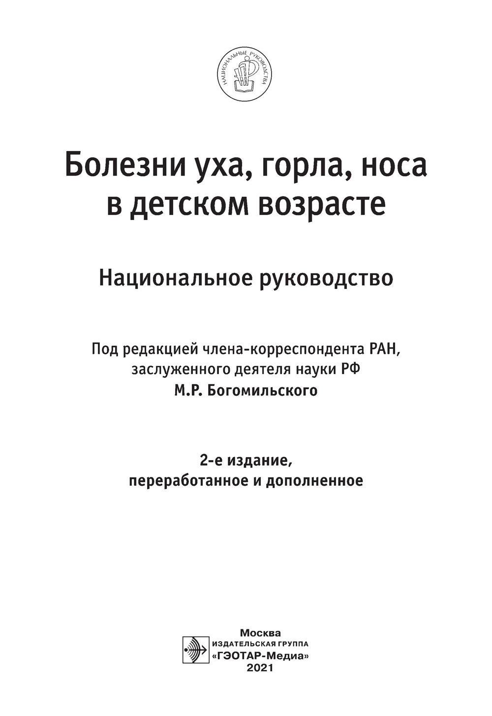 Аннотация: Болезни уха, горла, носа в детском возрасте: национальное руководство. 2-е изд., перераб.и доп