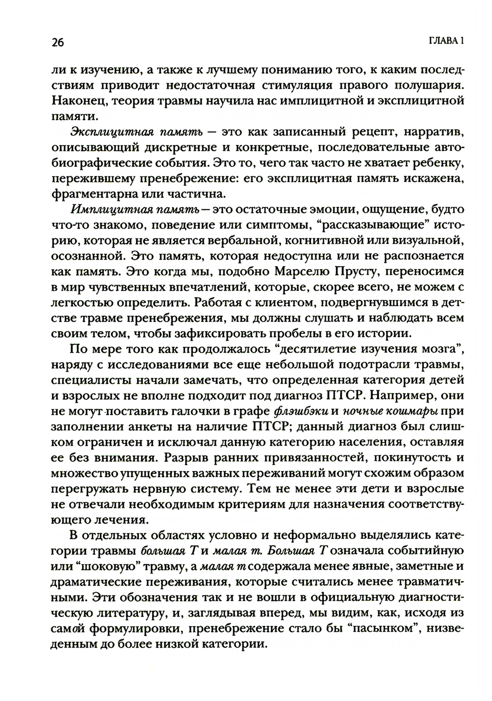 В этой книге автор всесторонне исследует проблему пренебрежения в детском возрасте и предлагает практическое руководство по оказанию помощи в исцелении. Опираясь на прочную основу теории привязанности, опытный клиницист Рут Кон показывает, как терапевты могут распознать признаки пренебрежения в детстве, дает рекомендации к пониманию долгосрочных последствий, проявляющихся во взрослом возрасте, и раскрывает стратегии, которые помогут клиентам добиться максимальных терапевтических результатов. В книге приводится обширный клинический материал, в частности рассматриваются полезные терапевтические навыки, такие как умение распознавать и различать невербальные попытки коммуникации. Также в книге описывается множество научно обоснованных методов лечения, которые могут применяться терапевтами в сессионной работе. Книга будет полезна любому специалисту в области психического здоровья, которому приходится иметь дело с клиентами, пережившими детскую травму.| Издательство | Диалектика |