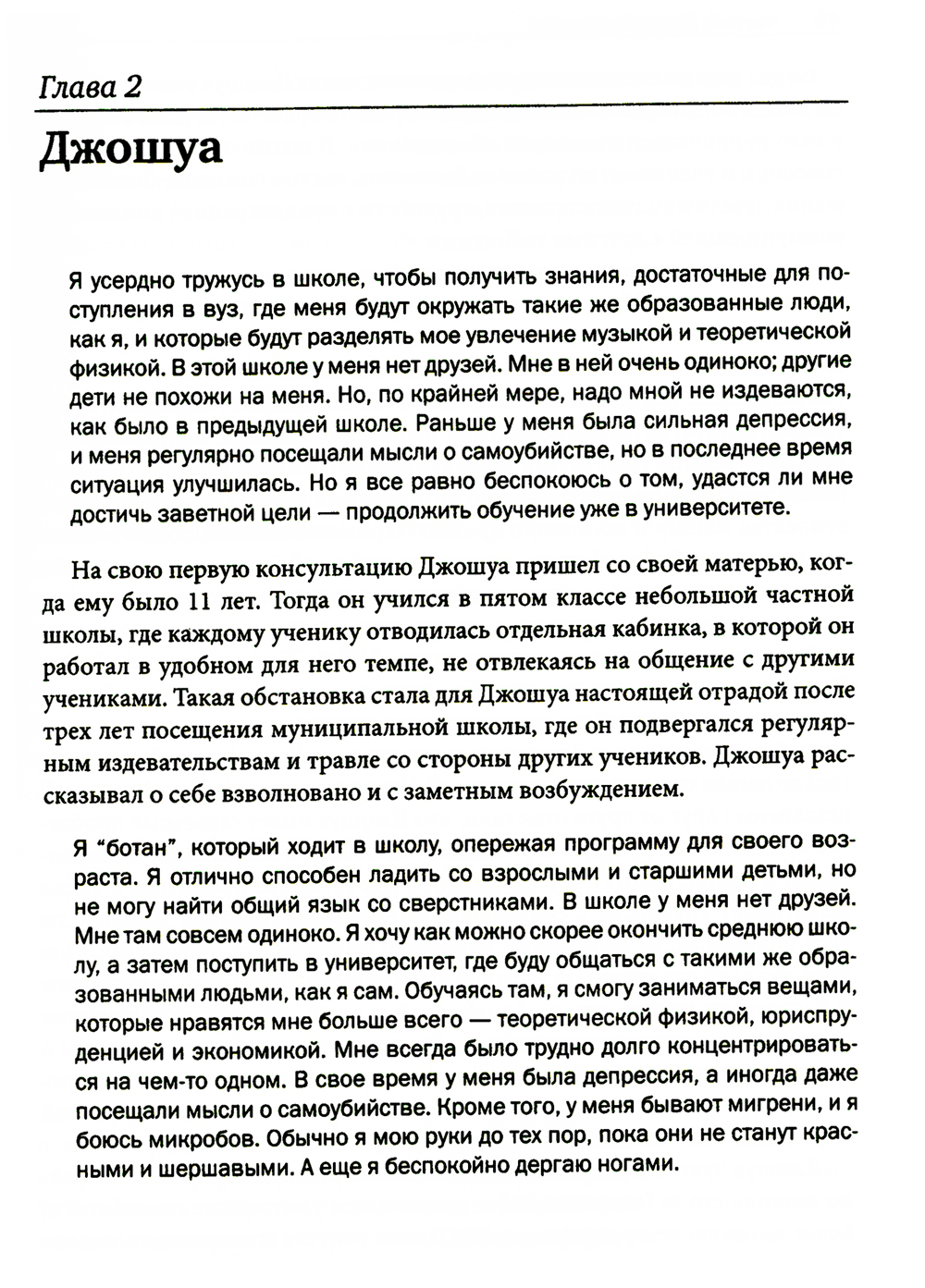В книге представлены истории людей, которые обладают хорошо развитыми умственными способностями, но при этом испытывают трудности с исполнительными функциями и социальным взаимодействием, обусловленные СДВГ и синдромом Аспергера. Авторы описывают 12 клинических случаев диагностирования данных расстройств у детей, подростков и взрослых. Читатели узнают, с какими проблемами сталкиваются такие пациенты и как можно помочь им благодаря эффективным терапевтическим методикам. Все клинические примеры дополняются детальным описанием природы самих расстройств. Написанная простым и понятным языком, книга адресована не только клиницистам, социальным работникам и специалистам в области психического здоровья, но также родителям пациентов, не понаслышке знакомых с рассматриваемыми проблемами. Авторы выступают за возвращение диагноза "синдром Аспергера" в диагностические руководства Американской психиатрической ассоциации и Всемирной организации здравоохранения.| Издательство | Диалектика |