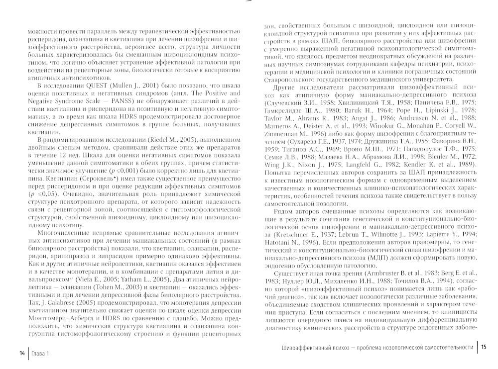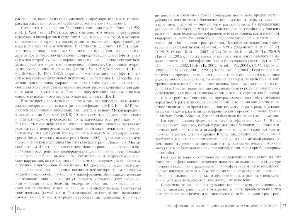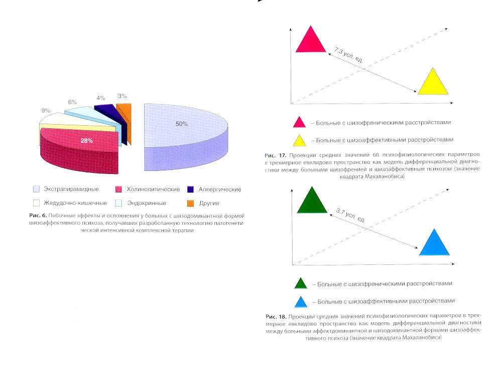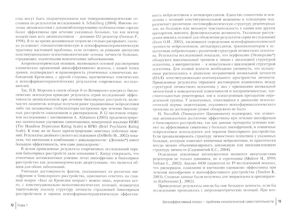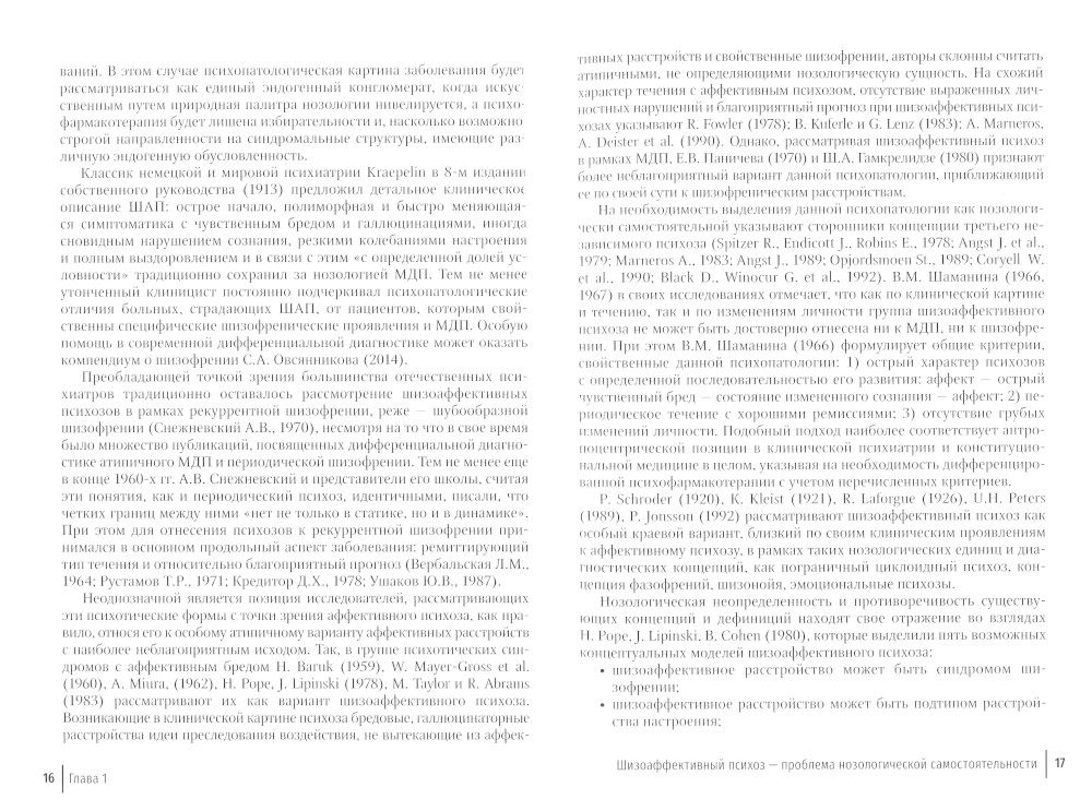 В руководстве представлен анализ истории развития взглядов на аффективные расстройства шизофренического спектра. Отражены результаты изучения соотношения структуры личности больных и формы шизоаффективного психоза, прогноза течения болезни, соотношения аномальной личностной изменчивости в консти-туционалыю-контийуальном пространстве и степени выраженности аффективных, позитивных и негативных психопатологических образований. На основе проведенных клинико-психопатологических, патопсихологических, психофизиологических, клинико-фармакологических исследований разработаны лечебные технологии в виде патогенетической интенсивной комплексной психофармакотерапии для больных шизоаффективным психозом в условиях дневного стационара. Издание предназначено психиатрам, клиническим психологам, психофизиологам, психофармакотерапевтам и врачам других специальностей.