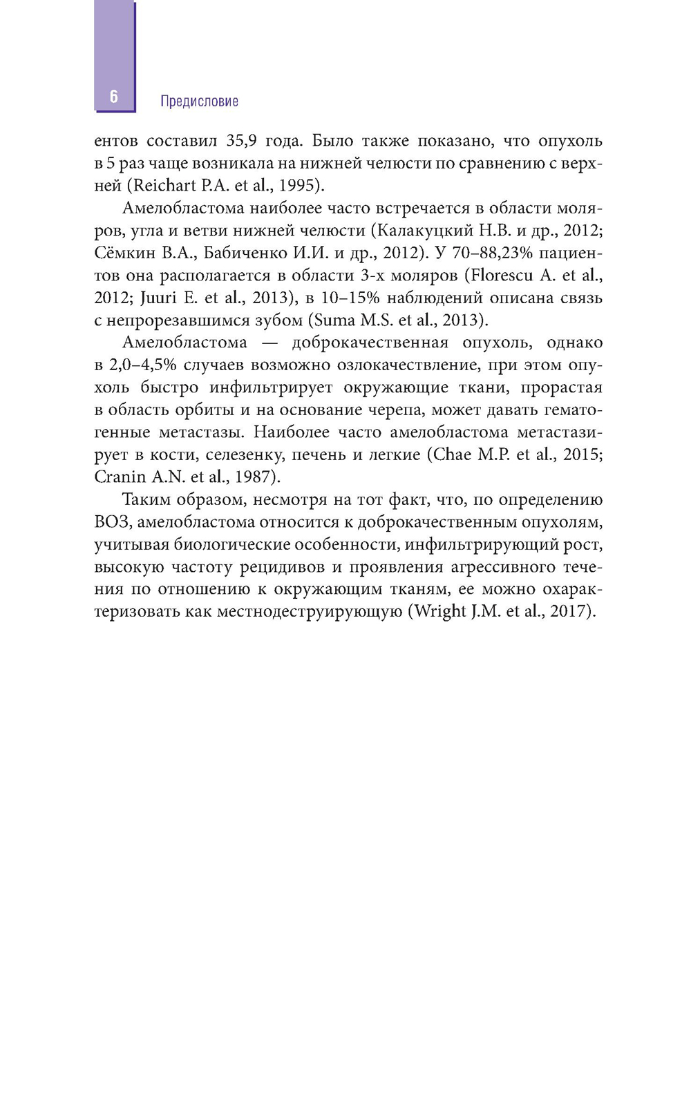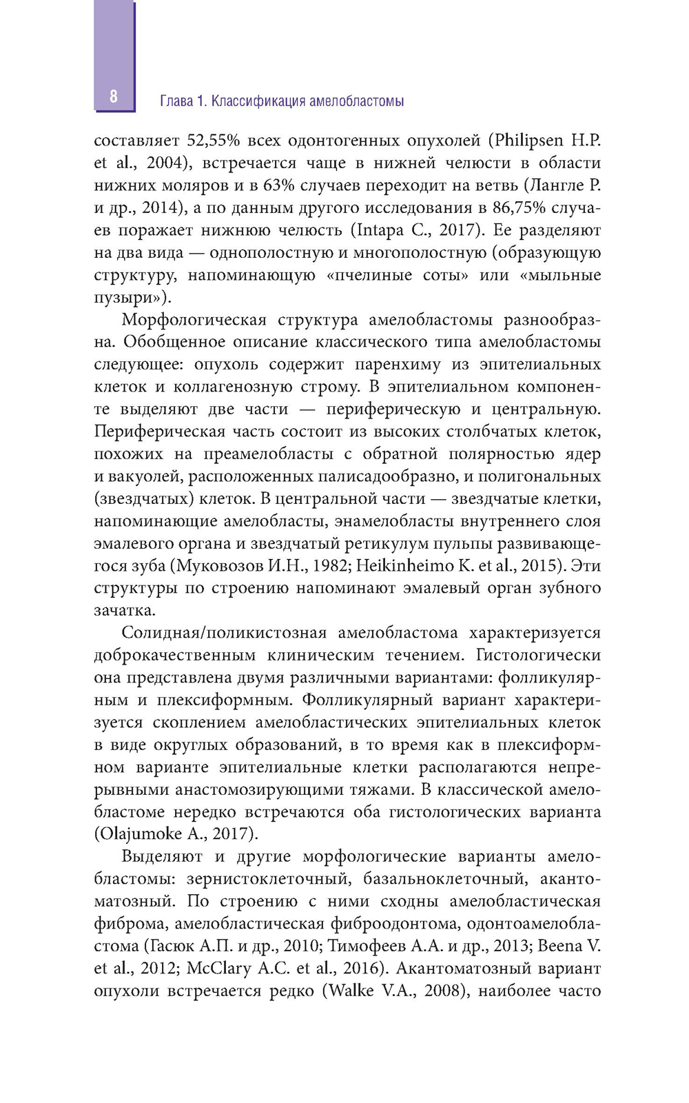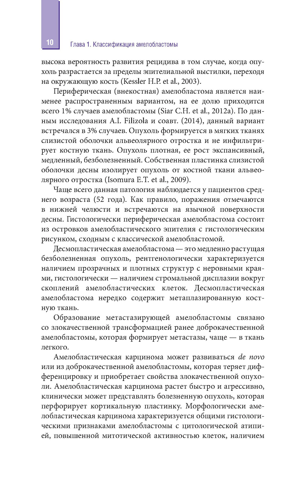 Книга посвящена клинической картине, современным методикам диагностики и лечения амелобластомы. Особое внимание уделено новым молекулярным диагностическим критериям, позволяющим с помощью иммуногистохимического исследования прогнозировать вероятность рецидивирования амелобластомы. Подробно описана гистологическая классификация амелобластомы, позволяющая выявлять наиболее агрессивные варианты, разобраны современные теории морфогенеза амелобластомы. Показано значение иммуногистохимических маркеров, генных мутаций и активности сигнальных путей в качестве прогностических признаков рецидивирования амелобластомы. Издание предназначено стоматологам, челюстно-лицевым хирургам, патологоанатомам, студентам, ординаторам, преподавателям медицинских вузов и специалистам постдипломного образования.| Издательство | ГЭОТАР-Медиа |