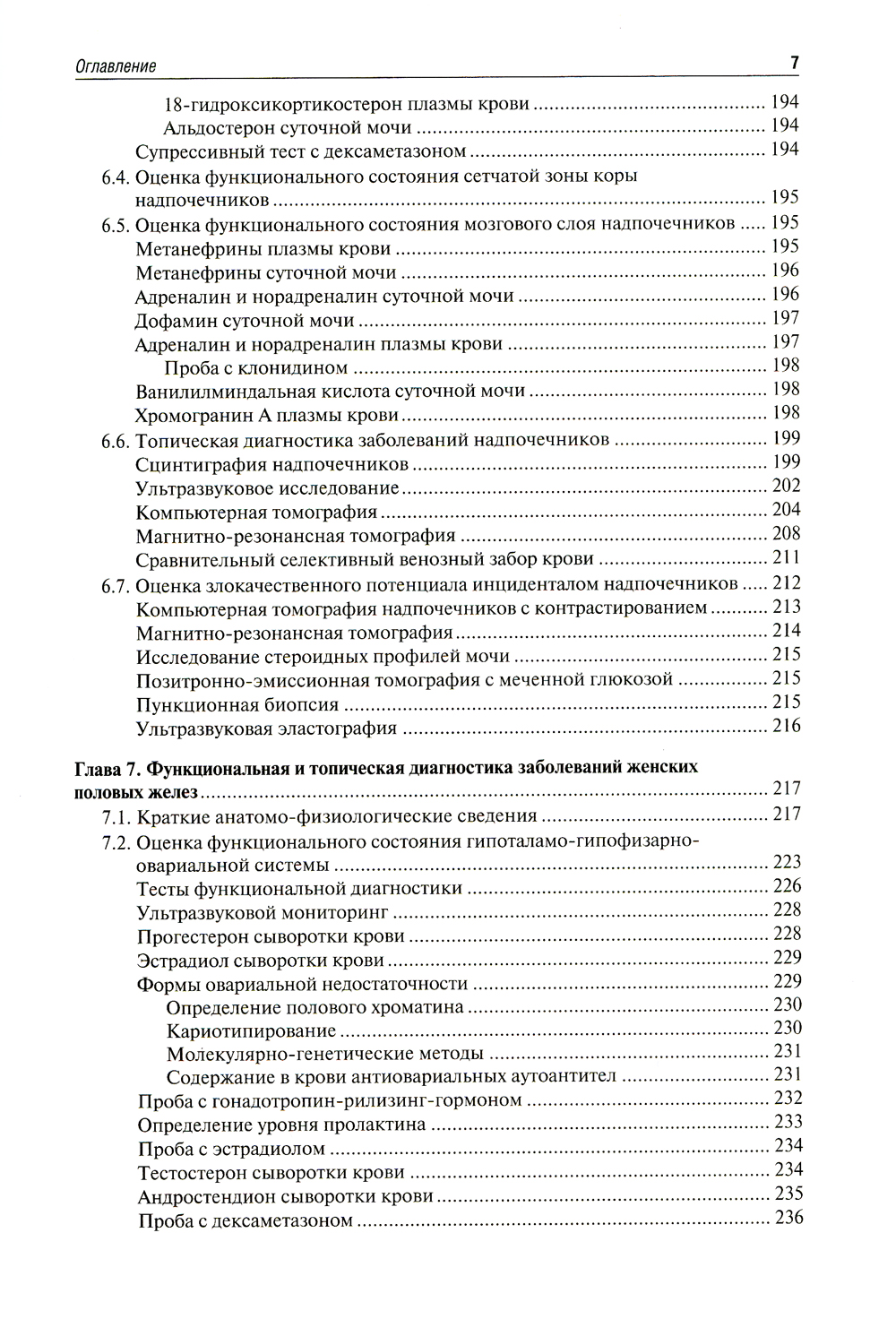 В руководстве рассмотрены основные принципы и методы функциональной и топической диагностики эндокринных заболеваний. В третьем издании исключена информация об устаревших методах функциональной и топической диагностики. В первую главу добавлены данные о диагностических возможностях высокоэффективной жидкостной хроматографии и газовой хроматографии/масс-спектрометрии. В материале, посвященном диагностике акромегалии, гипофизарной недостаточности, медуллярного рака щитовидной железы, гестационного сахарного диабета, первичного гиперальдостеронизма, феохромоцитомы и других заболеваний, показаны критерии последних международных и отечественных методических рекомендаций и консенсусов. Учитывая большую актуальность проблемы, подробно описаны лабораторные и интраскопические критерии злокачественности случайно обнаруженных опухолей надпочечников - инциденталом. Книга представляет интерес для врачей различных специальностей: эндокринологов, терапевтов, врачей обшей практики, хирургов, рентгенологов, а также клинических ординаторов и врачей-интернов.| Издательство | ГЭОТАР-Медиа |