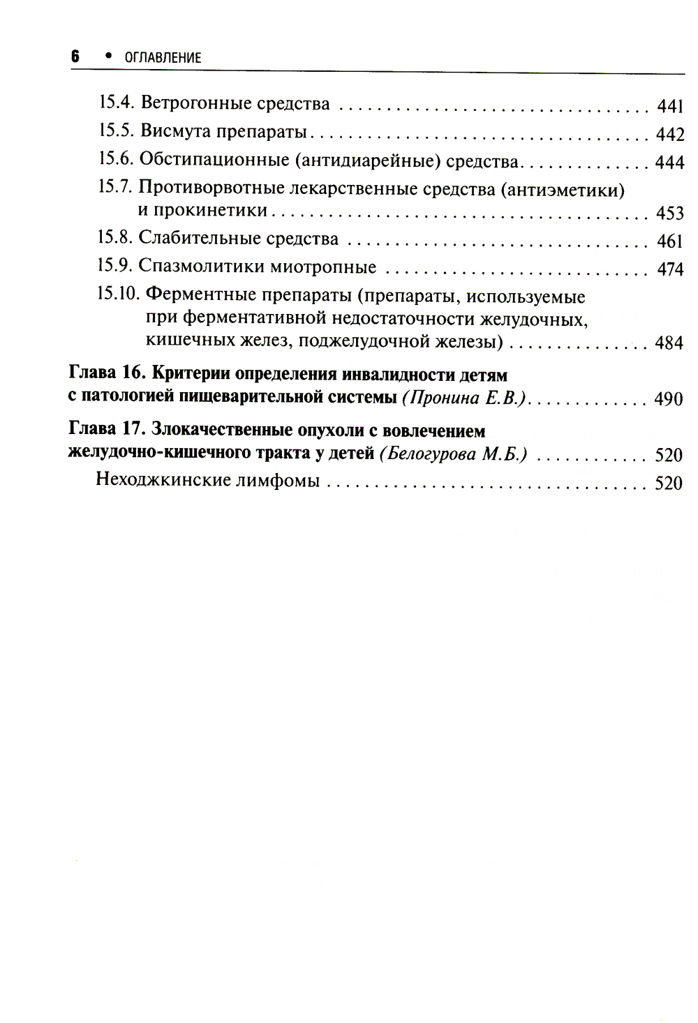 В руководстве рассмотрены современные принципы ведения пациентов с различной патологией желудочно-кишечного тракта от периода новорожденности до подросткового возраста, основанные на клинических рекомендациях, достоверно характеризующих эффективность и безопасность лечебно-диагностических мероприятий, и международных стандартах медицинской помощи с учетом соответствующих государственных требований. Значительное внимание уделено питанию здоровых детей разного возраста. Отдельная глава посвящена пропедевтическим аспектам обследования детей и подростков с патологией пищеварительной системы. Дана исчерпывающая характеристика основных лекарственных препаратов, применяемых в терапии заболеваний желудочно-кишечного тракта у детей и подростков. Особый интерес представляет глава, включающая оценку критериев инвалидности при заболеваниях желудочно-кишечного тракта. Издание адресовано практикующим врачам-педиатрам, семейным врачам, гастроэнтерологам, клиническим ординаторам и студентам медицинских вузов.| Издательство | ГЭОТАР-Медиа |