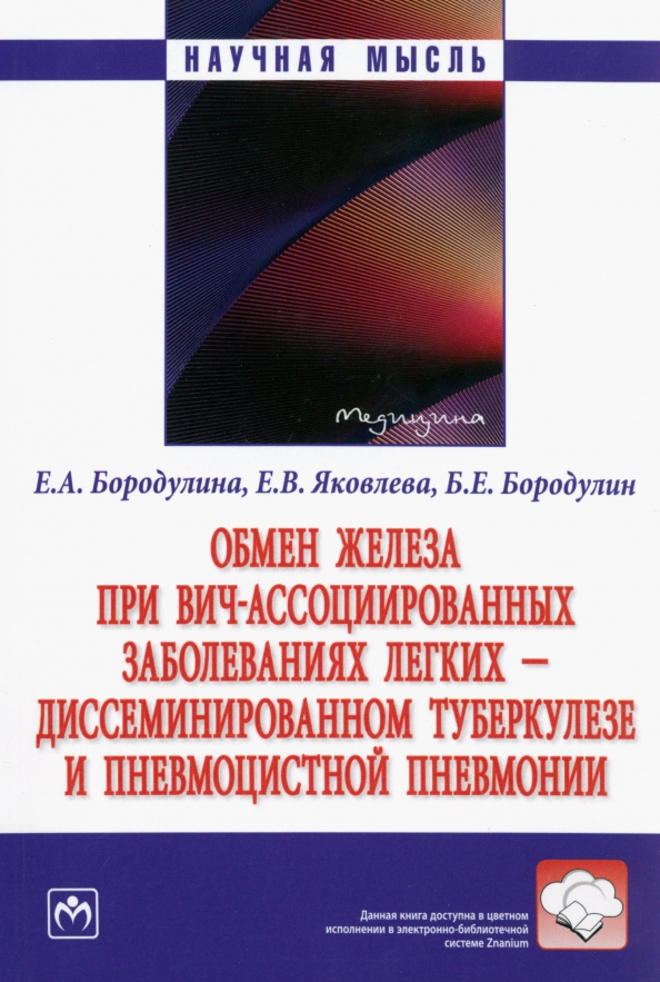 Монография представляет сравнительное исследование клинических особенностей и основных показателей метаболизма железа при заболеваниях легких, являющихся СПИД-индикаторными заболеваниями. Ведущими вторичными заболеваниями при ВИЧ, нередко являющимися первыми проявлениями ВИЧ-инфекции, являются пневмонии, вызванные оппортунистической грибковой инфекцией P. jirovecii (пневмоцистная пневмония) и специфическим возбудителем M. tuberculosis (туберкулез), причем при обоих заболеваниях возможно развитие синдрома диссеминации. Использование показателей обмена железа в качестве параметров сравнительного анализа указанных заболеваний представляется впервые. Приведены исследования пациентов с туберкулезом легких и пневмоцистной пневмонии в сочетании с ВИЧ-инфекцией. Предназначена для пульмонологов, инфекционистов, фтизиатров, врачей общей практики.