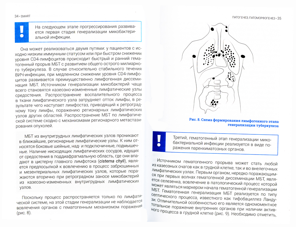 Серия SMART - новое поколение изданий для практикующих врачей. Каждая нозология или метод включает описание патогенеза, нозологического профиля, протоколы лечения и ссылки на Кохрановские обзоры. В руководстве изложены результаты многолетних наблюдений автора в области туберкулеза и ВИЧ-инфекции. Основываясь на собственном богатом опыте, подкрепленном анализом мировых данных, автор подробно раскрывает особенности патогенеза, клиники и диагностики туберкулеза, развивающегося в сочетании с ВИЧ-инфекцией. В книге детально освещены вопросы дифференциальной диагностики туберкулеза как легочной, так и внелегочной локализации с наиболее сложными оппортунистическими заболеваниями, развивающимися на поздних стадиях ВИЧ-инфекции. Особое внимание уделено особенностям проведения противотуберкулезной и антиретровирусной терапии туберкулеза, сочетанного с ВИЧ-инфекцией. Издание предназначено врачам, занимающимся вопросами фтизиатрии, инфекционных болезней, а также врачам-клиницистам всех специальностей.| Издательство | ГЭОТАР-Медиа |