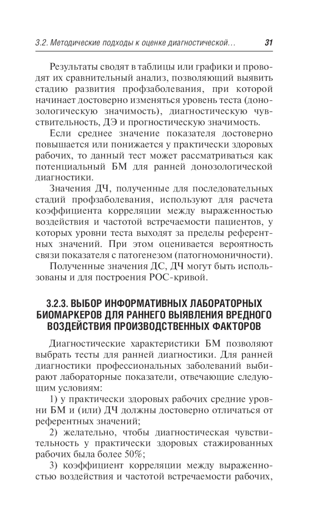 В руководстве представлена методология изучения диагностических характеристик биомаркеров, разработанная на основании закономерностей изменения их уровней. Предложена методика выбора наиболее информативных лабораторных биомаркеров и разработки их комплексов для ранней диагностики вредного профессионального воздействия. Установлены диагностические характеристики лабораторных маркеров при воздействии производственной пыли, физических и химических вредных факторов на организм рабочих, контактирующих с вредными производственными факторами. Издание предназначено врачам-профпатологам, врачам-лаборантам, специалистам по лабораторной диагностике профессиональных заболеваний, врачам по гигиене труда, научным сотрудникам, аспирантам и студентам медицинских вузов.| Издательство | ГЭОТАР-Медиа |
