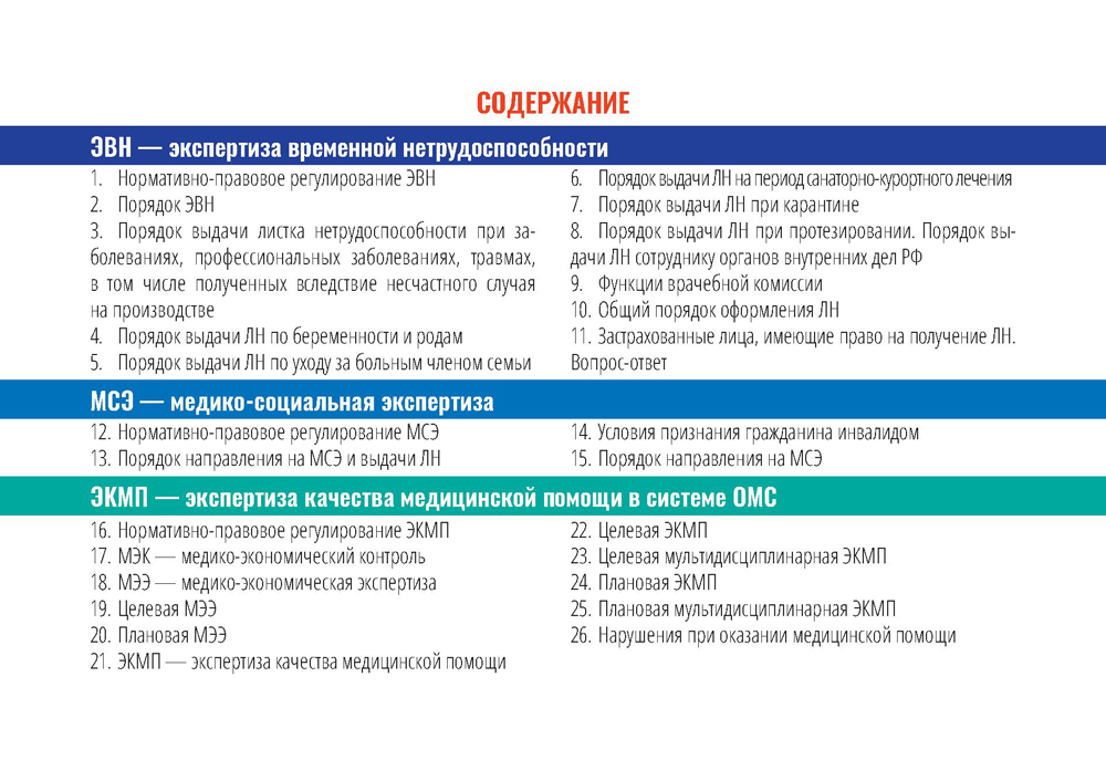 Наглядное руководство освещает современную и актуальную информацию о порядке проведения медицинских экспертиз, основанную на действующих нормативно-правовых актах и представленную в виде карточек. Они содержат краткие инструкции проведения экспертизы временной нетрудоспособности, качества медицинской помощи и направления пациента на освидетельствование в бюро МСЭ. Предназначено врачам амбулаторно-поликлинического звена всех специальностей, клиническим ординаторам и студентам старших курсов медицинских вузов.| Издательство | ГЭОТАР-Медиа |