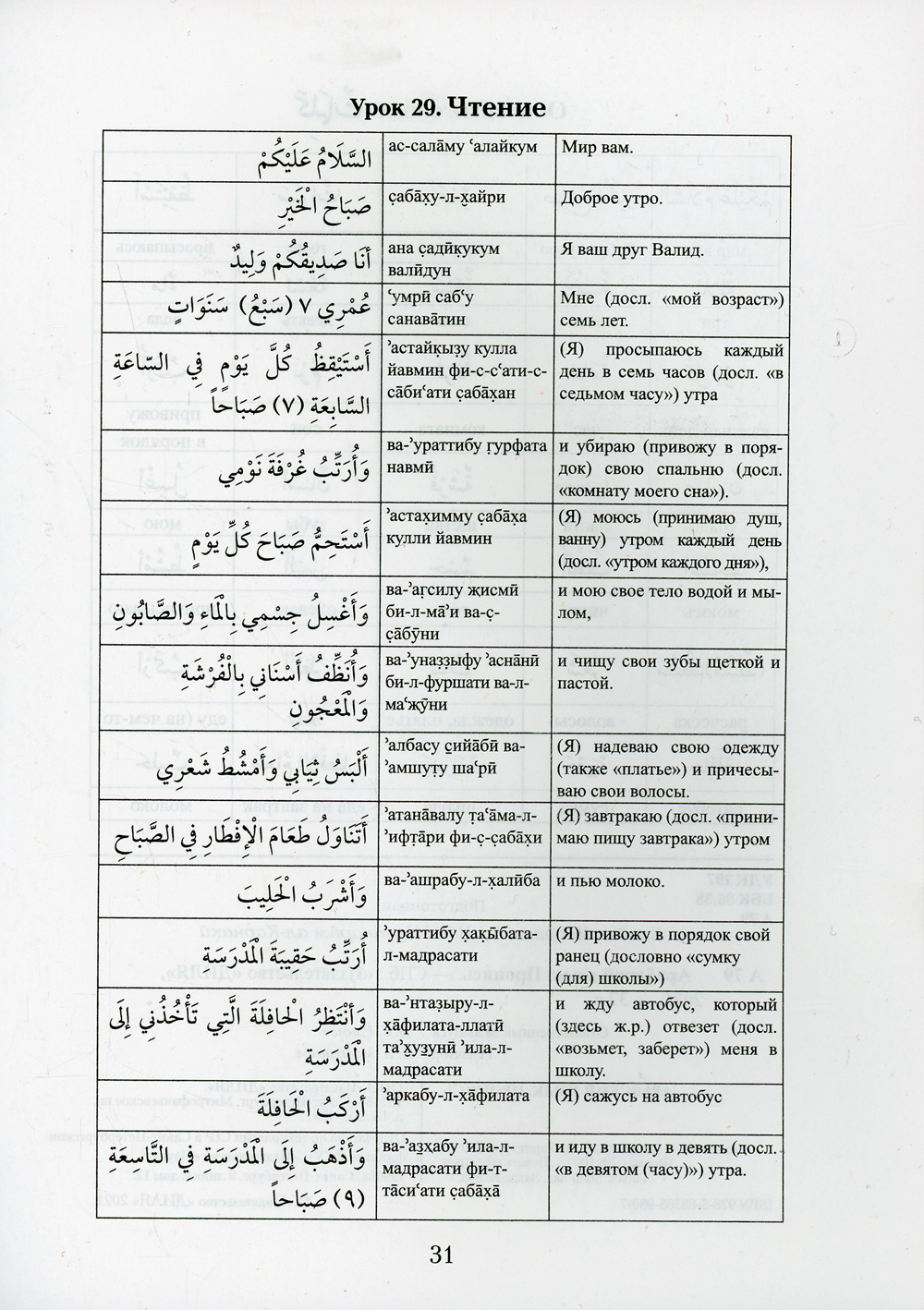 Перед вами - необычная пропись арабского языка. С ее помощью можно научиться и читать, и писать по-арабски. Потребуется только немного усидчивости и интереса. В арабском языке 28 букв и еще немного вспомогательных значков, которые называются огласовками. Поэтому в нашей книге есть 28 уроков, в каждом из которых всего два упражнения - в первом упражнении надо все прописать, а во втором - найти и прописать только знакомые буквы. Когда будете прописывать буковки, попробуйте их сразу прочитать. А если не знаете как - слева вам в помощь написано, как эта буква с этими огласовками читается. Когда вы успешно сделаете все 28 уроков, вам предстоит еще один увлекательный урок - прочитать и переписать самому целый рассказ на арабском языке про утро обычного школьника Валида. Для подсказки мы дали транскрипцию этого рассказа (то есть написали его русскими буквами с особыми значками), только, чур, не заглядывайте туда, пока сами не попробуете прочитать. И в самом конце книжечки находится маленький словарик основных слов, которые встретились вам в упражнениях и в рассказе.| Издательство | Диля |
