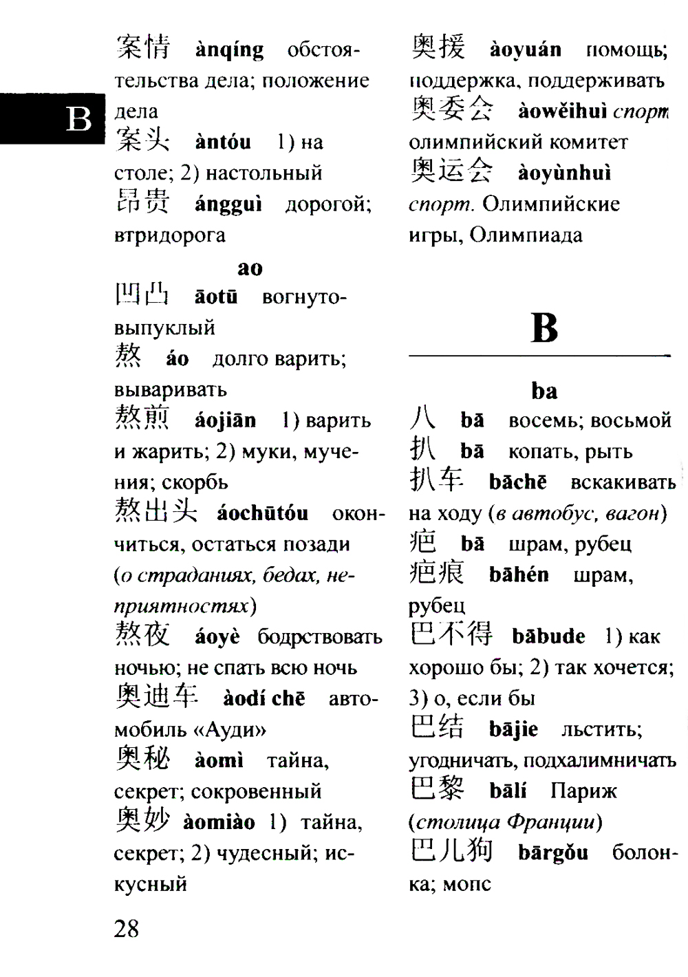 Словарь состоит из двух частей: китайско-русской и русско-китайской и содержит около 25 000 слов и словосочетаний, наиболее часто встречающихся в современных китайском и русском языках. Немаловажной особенностью словаря является и то, что составителем при подборе входящих в него слов учтены требования международного экзамена на знание китайского языка. Для удобства читателя словарь составлен в алфавитном порядке. Иероглифическое изображение каждой лексической единицы снабжено транскрипцией на основе латинских букв с обозначением тона. Издание будет полезным для широкого круга читателей: школьников, преподавателей и студентов вузов, переводчиков, а также тех, кто изучает китайский самостоятельно.| Издательство | Хит книга |