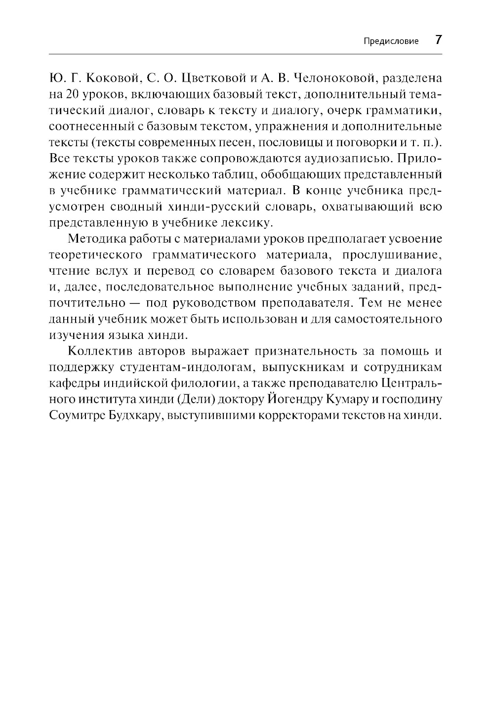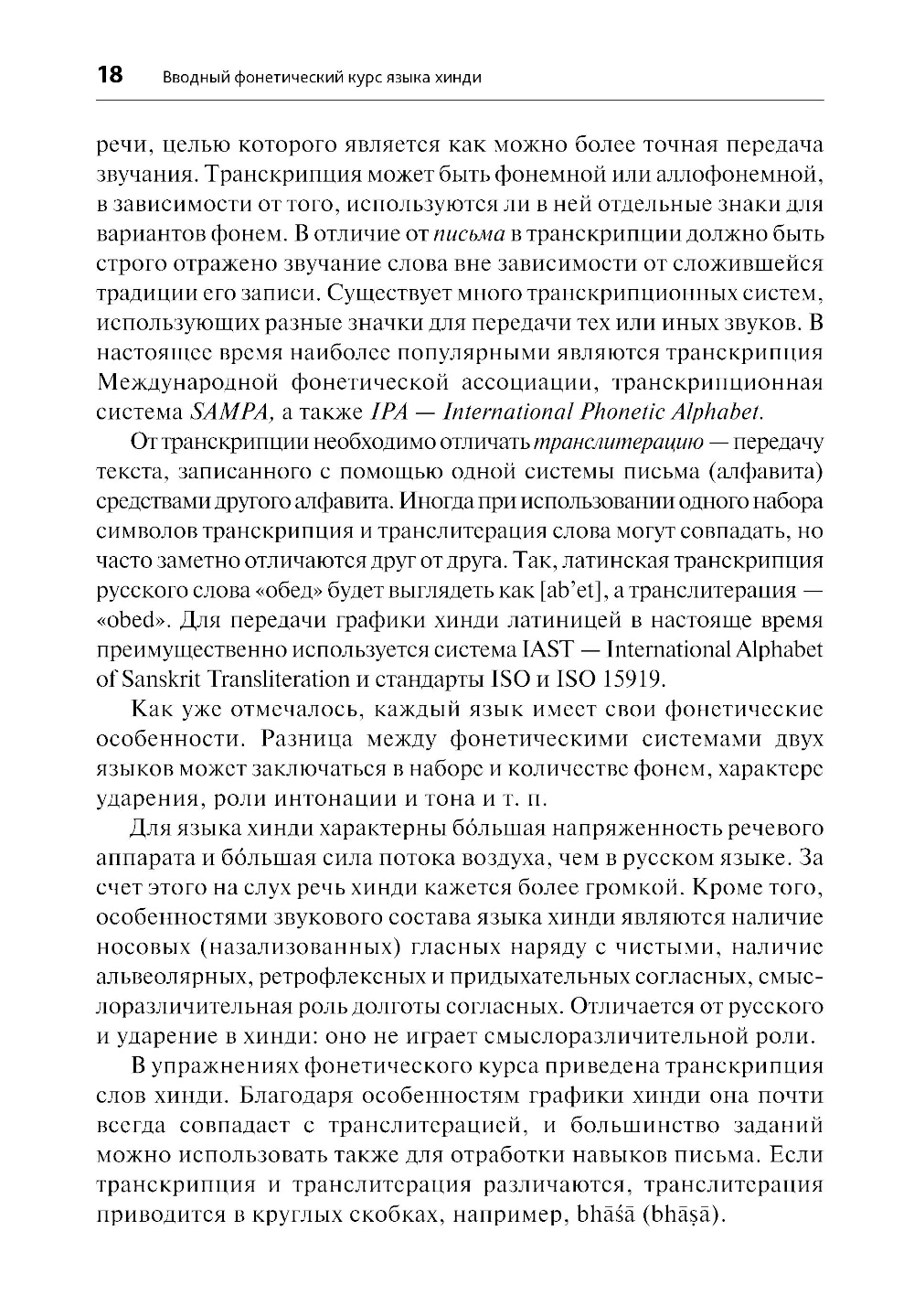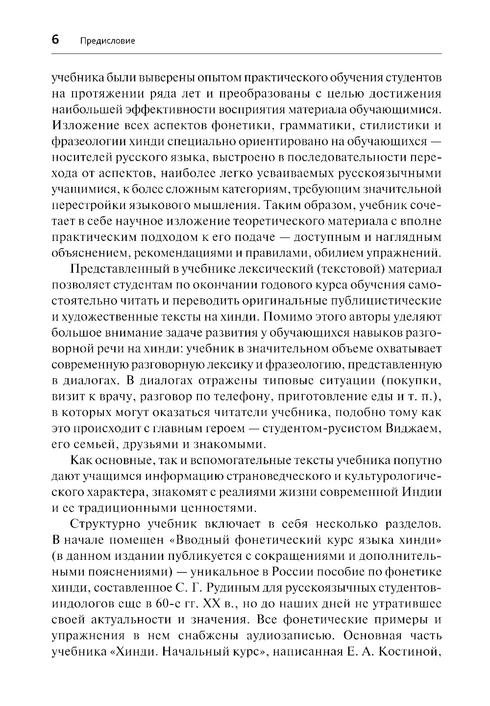 Второе, исправленное и дополненное, издание учебника состоит из двух частей вводного, достаточно подробного, фонетического курса, включающего в себя 9 уроков, и основного курса, содержащего 20 уроков. Все примеры из вводного курса, а также тексты и диалоги из основного курса включены в аудиозапись, которая выполнена носителями языка. Авторы учебника делают упор на развитие у учащихся навыков разговорной речи на хинди: представлен значительный объем современной разговорной лексики и фразеологии. В диалогах отражены типовые ситуации (покупки, визит к врачу, разговор по телефону, приготовление еды и т. п.), в которых могут оказаться изучающие язык. Кроме того, усвоив представленный в книге лексический и грамматический материал, учащиеся смогут самостоятельно читать и переводить оригинальные публицистические и художественные тексты на хинди.| Издательство | Каро |