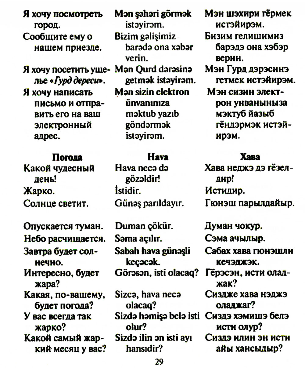 Аннотация: Русско-азербайджанский и азербайджанско-русский разговорник