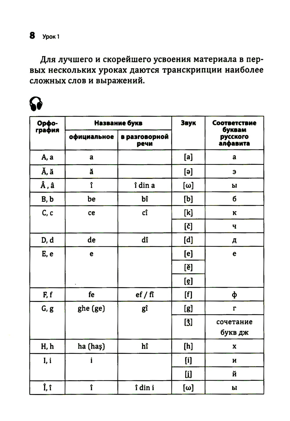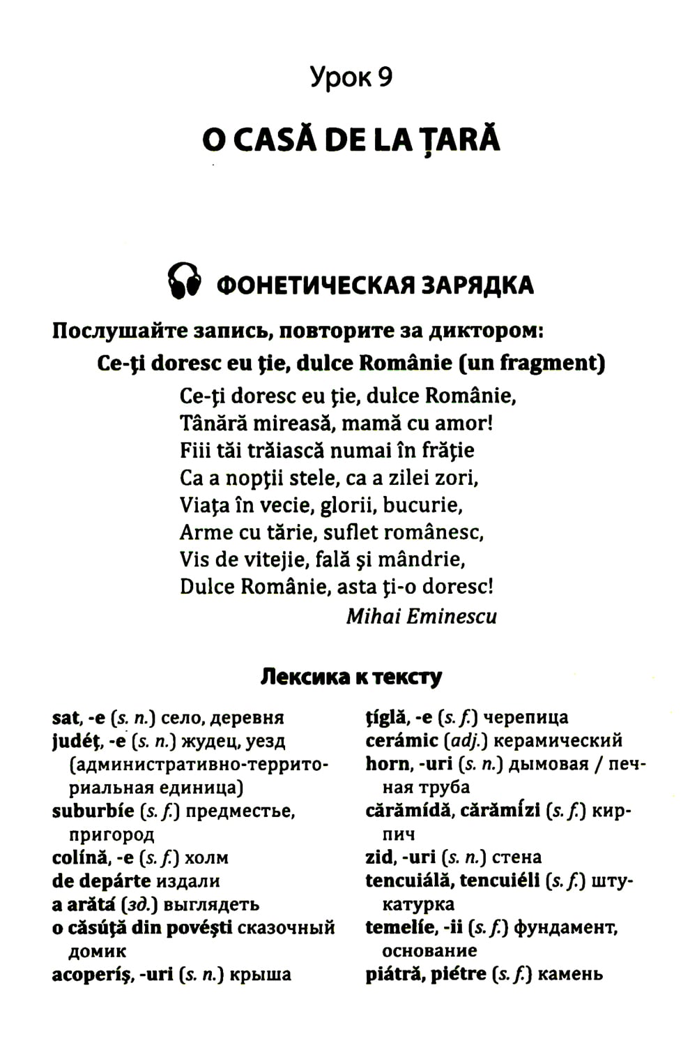 Предлагаемое учебное пособие адресовано всем желающим овладеть основами румынского языка. Оно может использоваться как в качестве учебника на факультетах иностранных языков, так и для самостоятельного изучения. Учебный материал в книге подается на основе методики, принятой на отделении румынского языка филологического факультета СПбГУ. Аудиозапись к учебному пособию включает тексты, а также фонетические упражнения уроков. Прослушивание аудиоприложения поможет овладеть правильным произношением и интонацией. Каждый урок содержит фонетические упражнения, текст с лексическим комментарием; задания и упражнения к тексту для активизации лексического материала урока; диалоги, которые следует выучивать наизусть, так как они являются примерами реальных коммуникативных ситуаций; грамматический материал, который дается последовательно и сопровождается примерами; грамматические упражнения и ключи к ним.| Издательство | Каро |