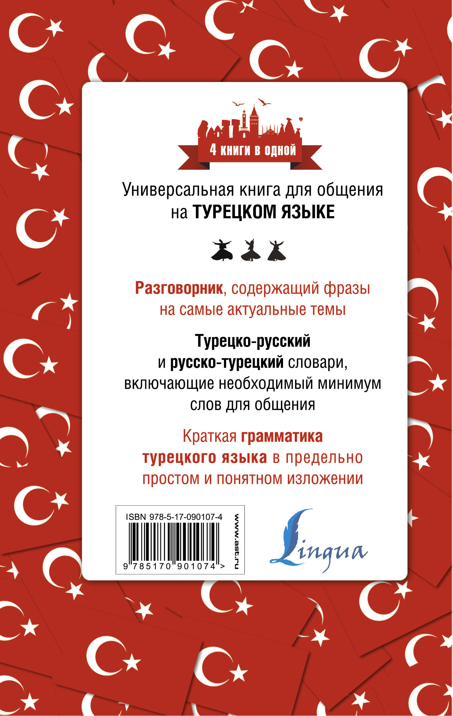 Аннотация: Турецкий язык. 4 книги в одной: разговорник, турецко-русский словарь, русско-турецкий словарь, грамматика