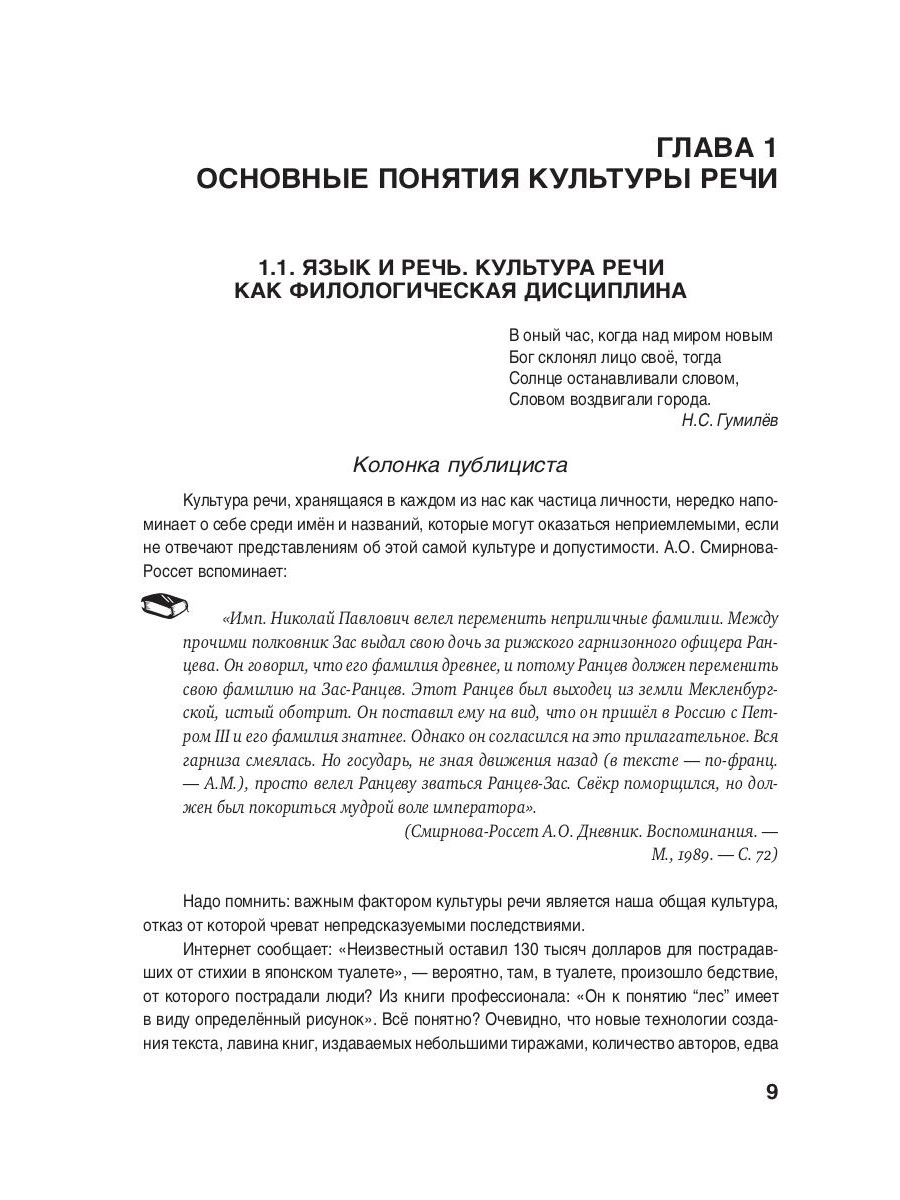Книга представляет собой теоретическую часть комплекта, отражающего авторскую концепцию курса и предназначенного для работников образования и СМИ, обучающихся в системе повышения квалификации. Читатель знакомится с основными понятиями культуры речи - она рассматривается как нормативность и целесообразность речи; затрагиваются и функциональные области науки. Нормативная сторона культуры речи предполагает знакомство с нормами языка (нормы орфоэпии, фонетики, лексики, грамматики), с видами и характером ошибок, эти нормы нарушающих. Глава о целесообразности знакомит с речевыми качествами: точностью, ясностью, логичностью, уместностью, чистотой, краткостью, выразительностью. В главе, посвящённой функциональным областям науки, рассматриваются текст, его основные характеристики и его виды; анализируются стили языка и их функционирование в различных типах речи. Всё вместе формирует образовательную парадигму, заключающуюся в таком преподнесении информации, которое было бы максимально востребовано обучающимися: через сюжеты, яркие примеры, факты - именно так, как учитель сможет передать эти знания учащимся, лектор - слушателям. Филологические знания оказываются обращёнными к читателю-собеседнику, который в системе творческих интенций привнесёт их в информационный блок собственного обращения к аудитории, выстраивая его содержательно, а также организуя риторически и психологически. Каждая тема рассматривается на значительном фактическом материале, с изложением позиций учёных и мастеров художественного слова.| Издательство | Т8 RUGRAM |