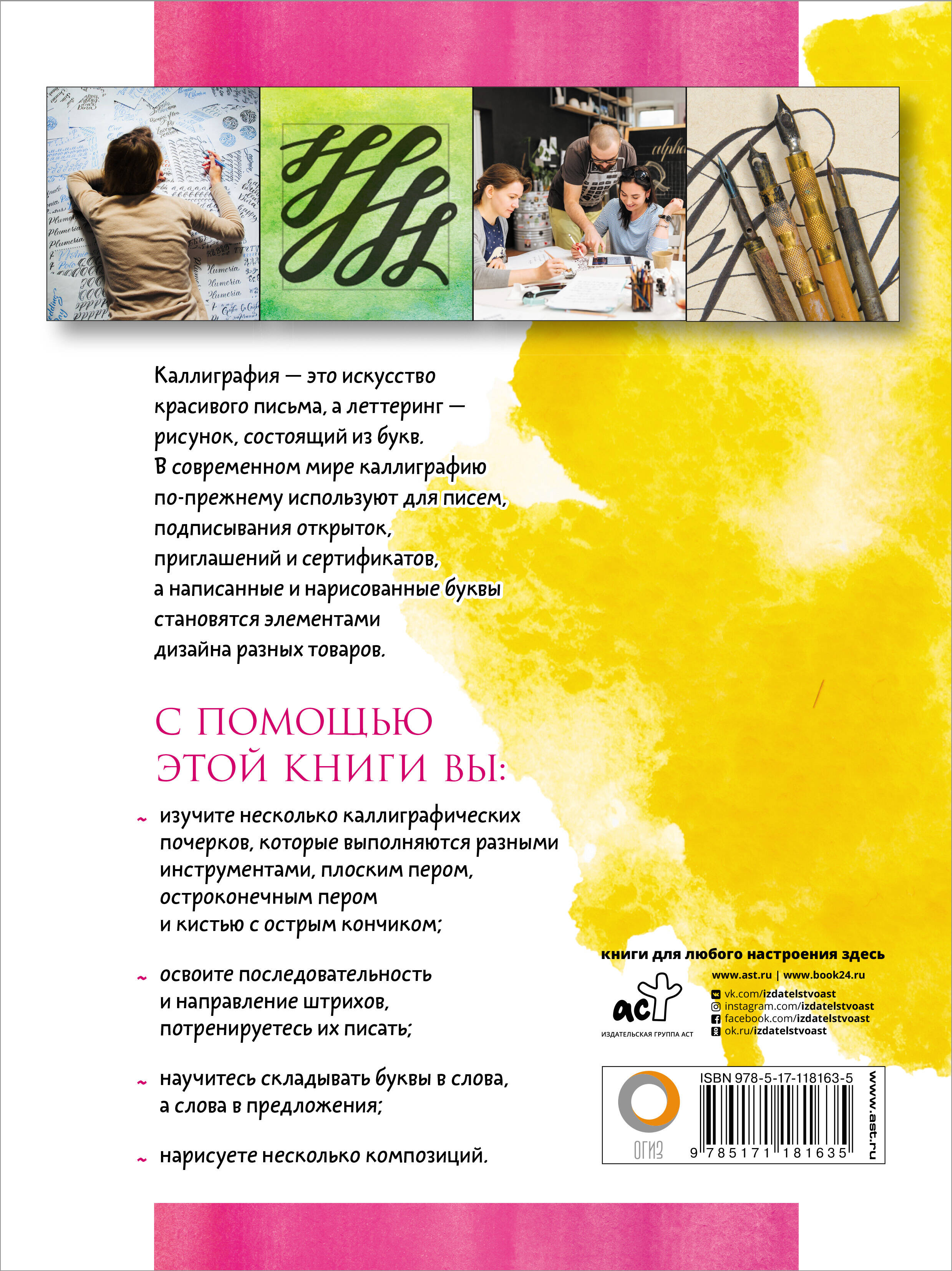 В современном мире каллиграфию по-прежнему используют для писем, подписывания открыток, приглашений и сертификатов, а написанные и нарисованные буквы становятся элементами дизайна разных товаров. С помощью этой книги вы изучите несколько каллиграфических почерков, которые выполняются разными инструментами, плоским пером, остроконечным пером и кистью с острым кончиком, освоите последовательность и направление штрихов, потренируетесь их писать, научитесь складывать буквы в слова, а слова в предложения, нарисуете несколько композиций.| Издательство | Издательство "АСТ" |