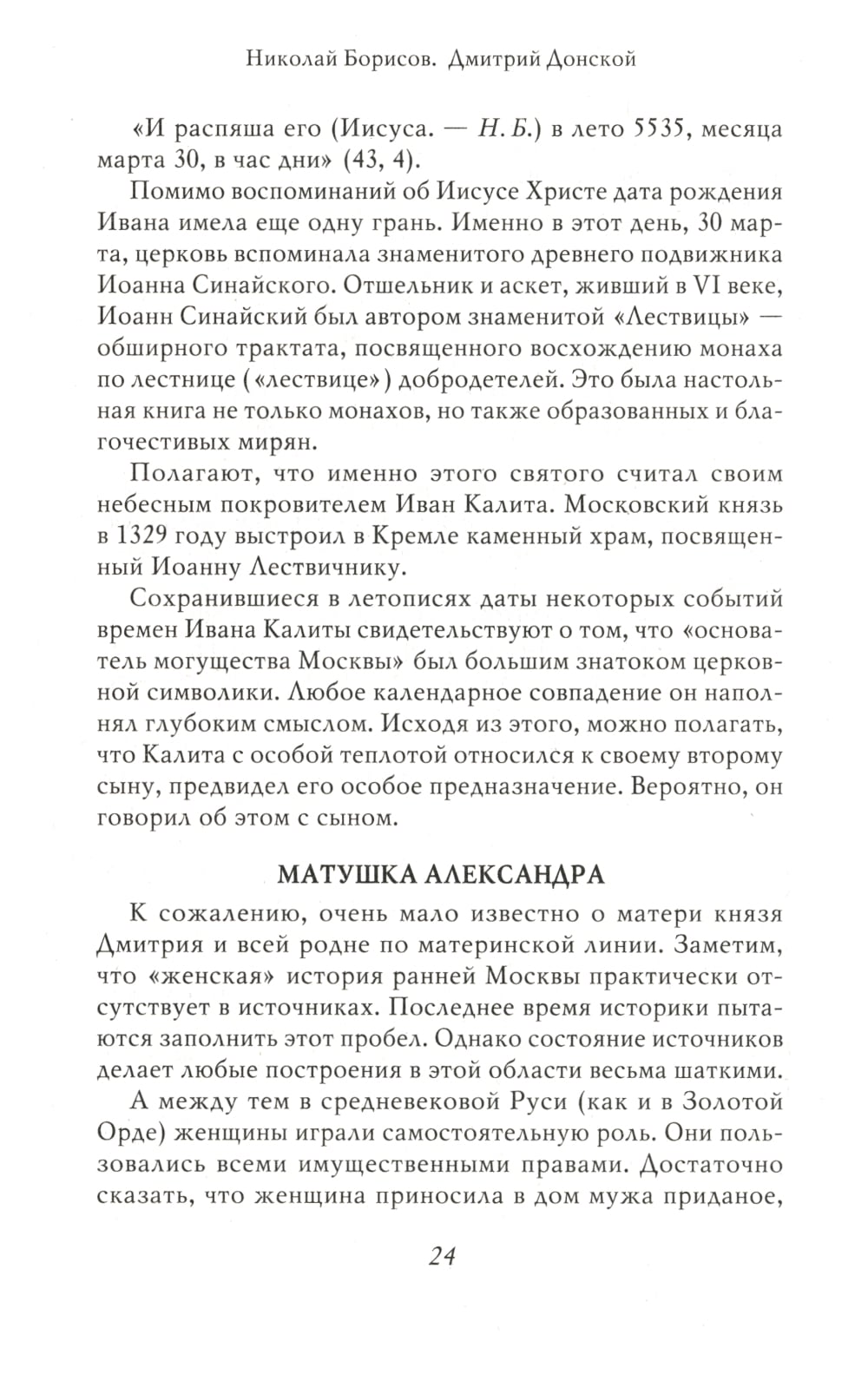 Московский князь Дмитрий Донской относится к тому типу исторических личностей, которых принято называть знаковыми. Большинству он известен как герой Куликовской битвы, положившей начало освобождению Руси от ордынской зависимости. Книга доктора исторических наук, профессора Н.С. Борисова проливает свет на разные аспекты тридцатилетнего правления Дмитрия Ивановича. Князь представлен в ней настоящим собирателем, устроителем и хранителем русских земель, глубоко верующим человеком, отважным воином и мудрым политиком. Издание сопровождается публикацией произведения «Задонщина» XIV столетия, а также биографического очерка выдающегося русского историка В.О. Ключевского, посвященного основателю Троице-Сергиева монастыря святому Сергию Радонежскому. Проект «Собиратели Земли Русской» реализуется Российским военно-историческим обществом при поддержке партии «Единая Россия».| Издательство | Проспект |