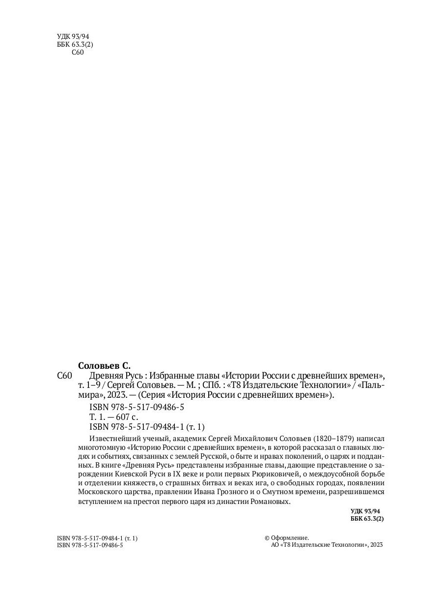 Аннотация: Древняя Русь. Избранные главы "Истории России с древнейших времен", т. 1- 9