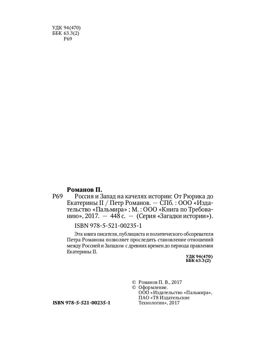 Эта книга писателя, публициста и политического обозревателя Петра Романова позволяет проследить становление отношений между Россией и Западом с древних времен до периода правления Екатерины II.