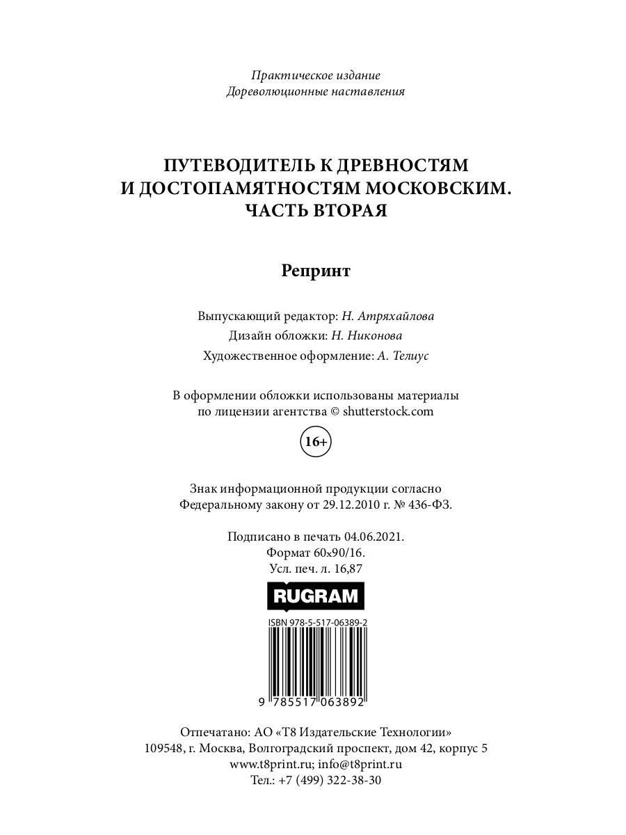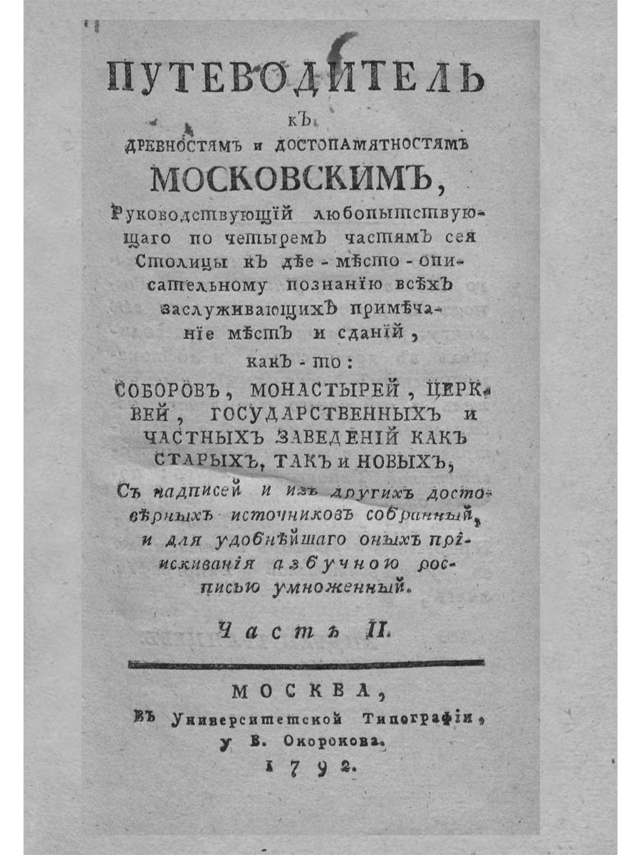 Аннотация: Путеводитель к древностям и достопамятностям московским. Ч. 2. (репринтное изд.)