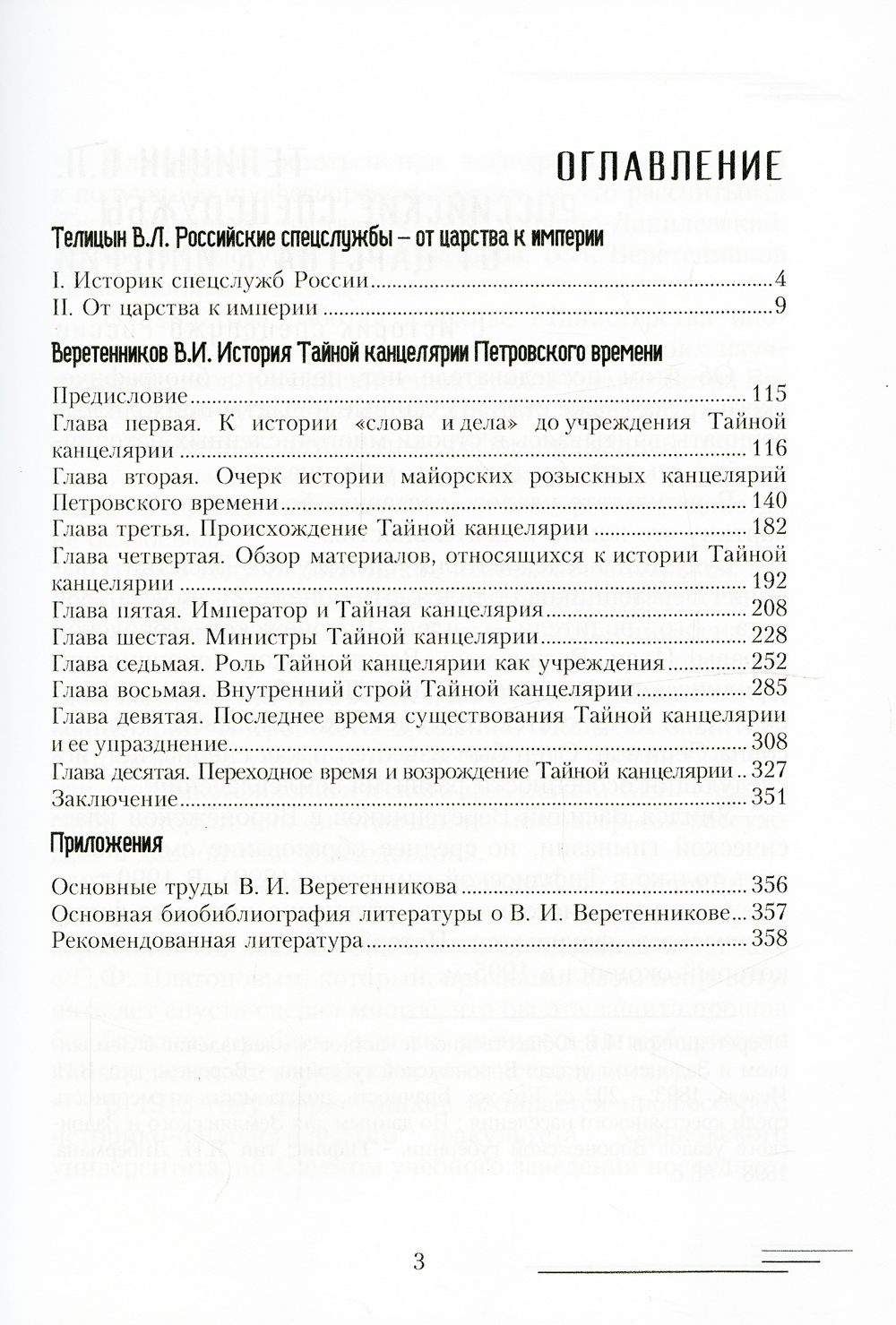 Исследование В.И. Веретенникова, впервые вышло в 1910 году. Автор (архивист, доктор исторических наук, профессор, специалист по истории России XVIII века) с привлечением архивного материала рассказывает о том, что предшествовало Тайной канцелярии и как она возникла, чем она занималась и каково было ее внутреннее устройство, кто ею руководил, как принимались решения. Значительное внимание Веретенников уделяет непосредственно личности Петра I, рассматривая его не только как создателя Тайной канцелярии, но и как активно принимавшего участие в деятельности.| Издательство | Т8 RUGRAM |