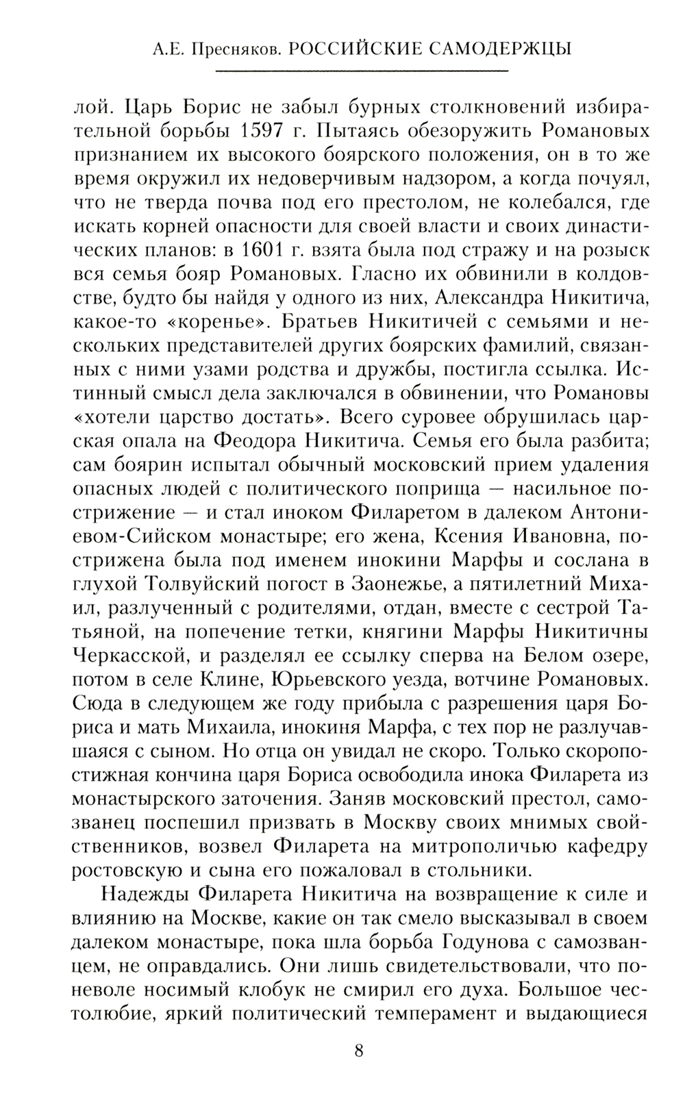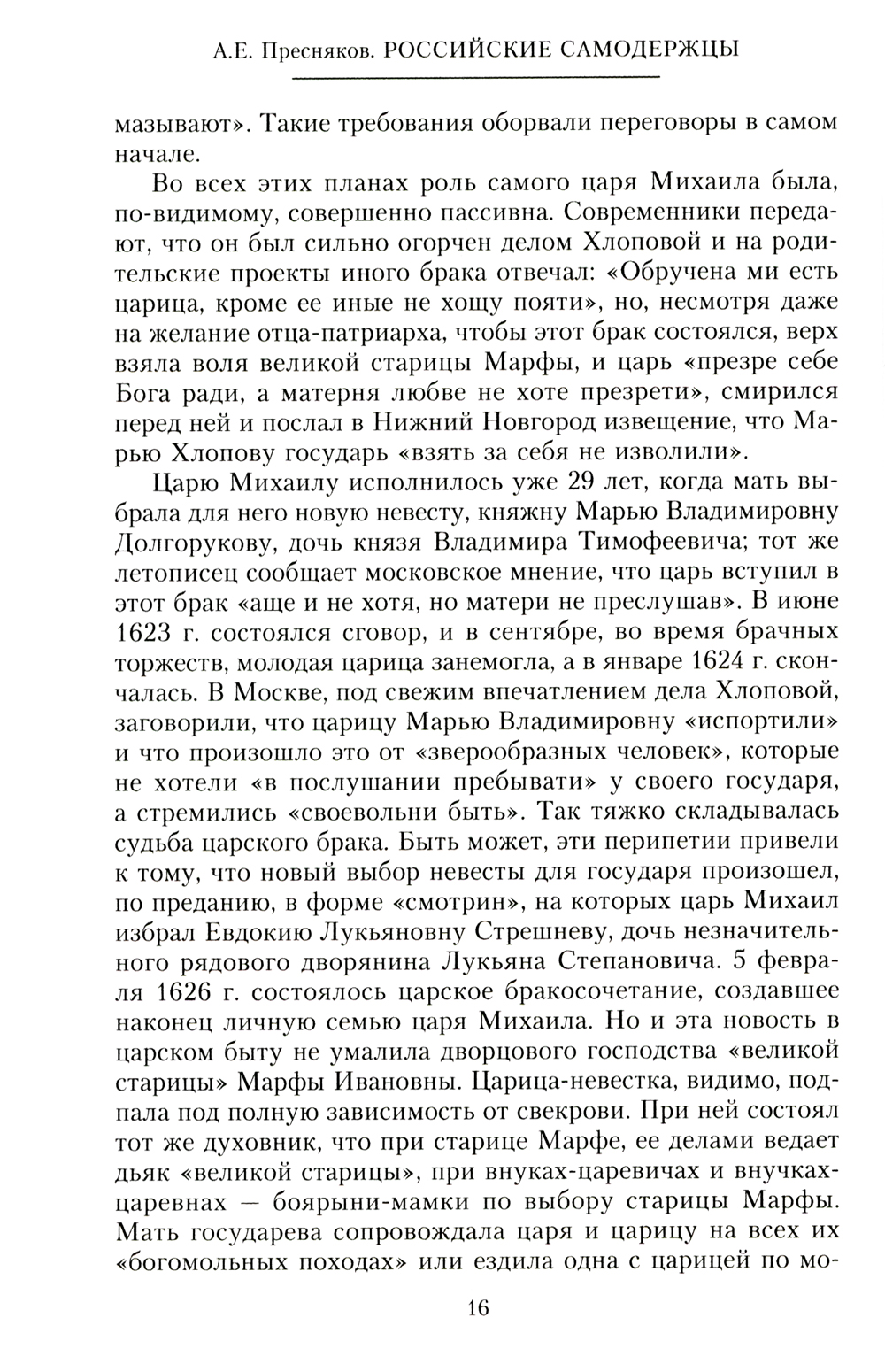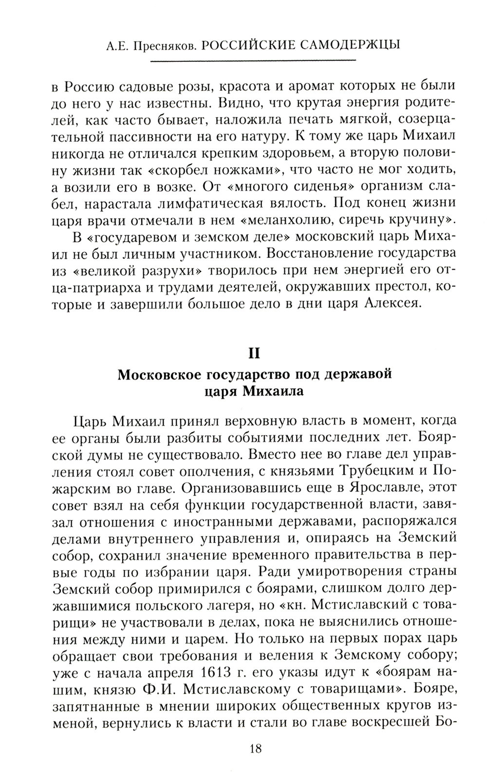 Исторические очерки выдающегося русского ученого А.Н. Преснякова посвящены самодержавным правителям Русской земли - царям Михаилу Феодоровичу, Алексею Михайловичу, Александру I, Николаю I. Пресняков представляет правдивую картину существовавшей действительности и - главное - ее созидателей. Очерки автора отличает объективный анализ описываемых эпох, осмысление подлинной роли личности в истории, ее силу и слабости. С.Ф. Платонов, учитель А.К. Преснякова, писал о нем как о замечательном исследователе, который «пытливо всматривался в явления окружающей жизни, благожелательно шел навстречу всему тому, в чем видел зерно грядущего развития и силы».| Издательство | Центрполиграф |