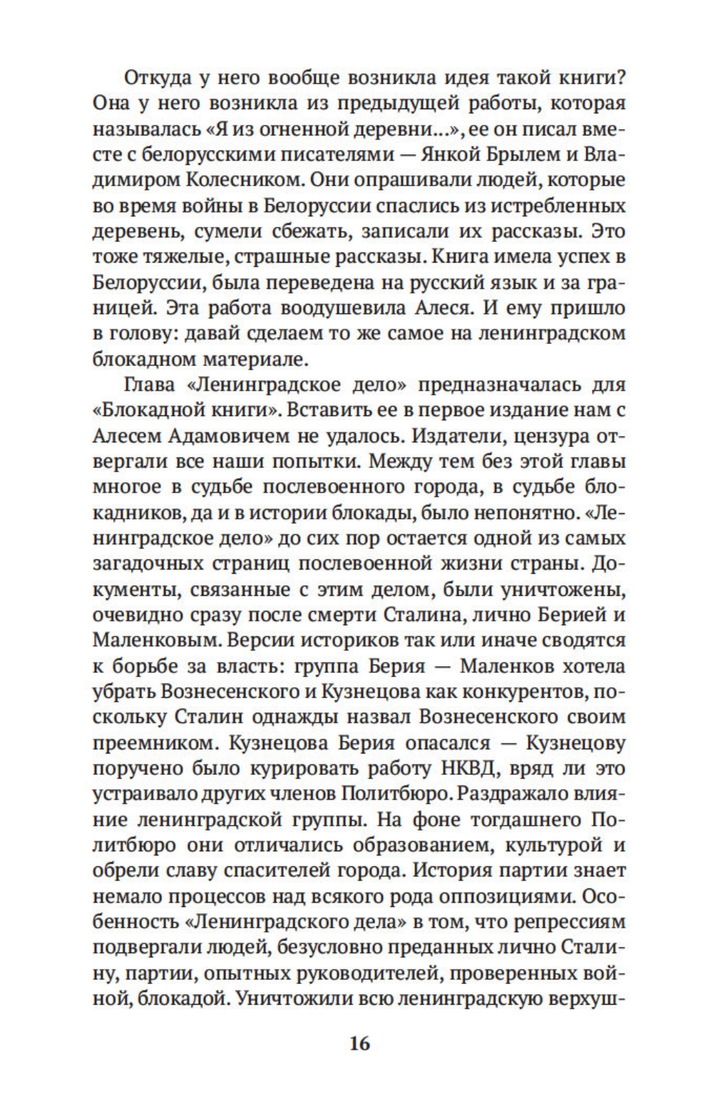 «Блокадная книга» рассказывает о муках осажденного фашистами Ленинграда, о героизме его жителей, о страданиях и о мужестве, о любви и о ненависти, о смерти и бессмертии. Основанная на интервью с очевидцами, документах, письмах, она остается самым подлинным, ярким свидетельством блокадных лет, книгой, которую должен прочесть каждый. В настоящее издание, помимо давно ставшего классическим основного текста «Блокадной книги», вошли также материалы, рассказывающие об истории ее создания, и многочисленные архивные фотографии блокадных лет.| Издательство | Азбука |