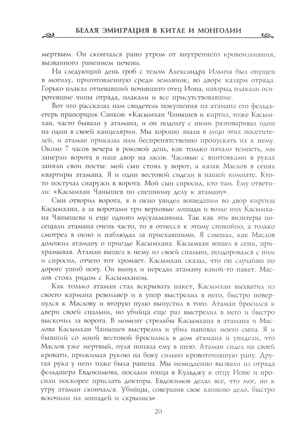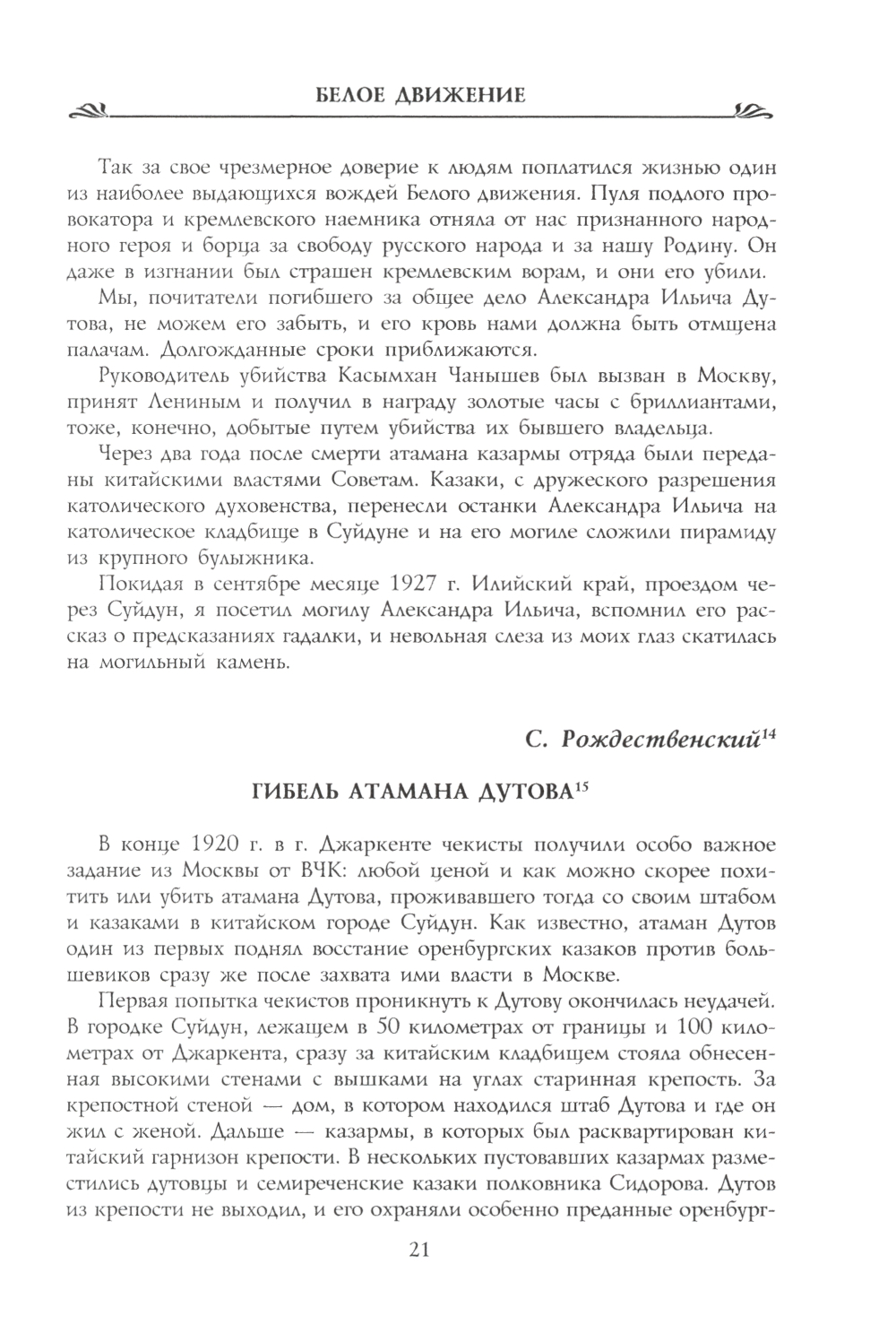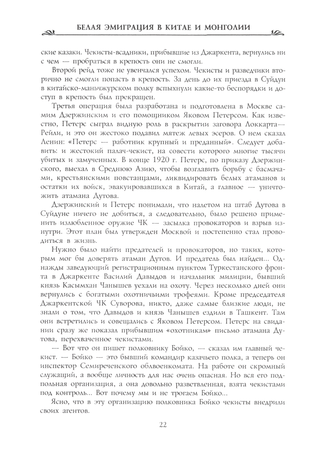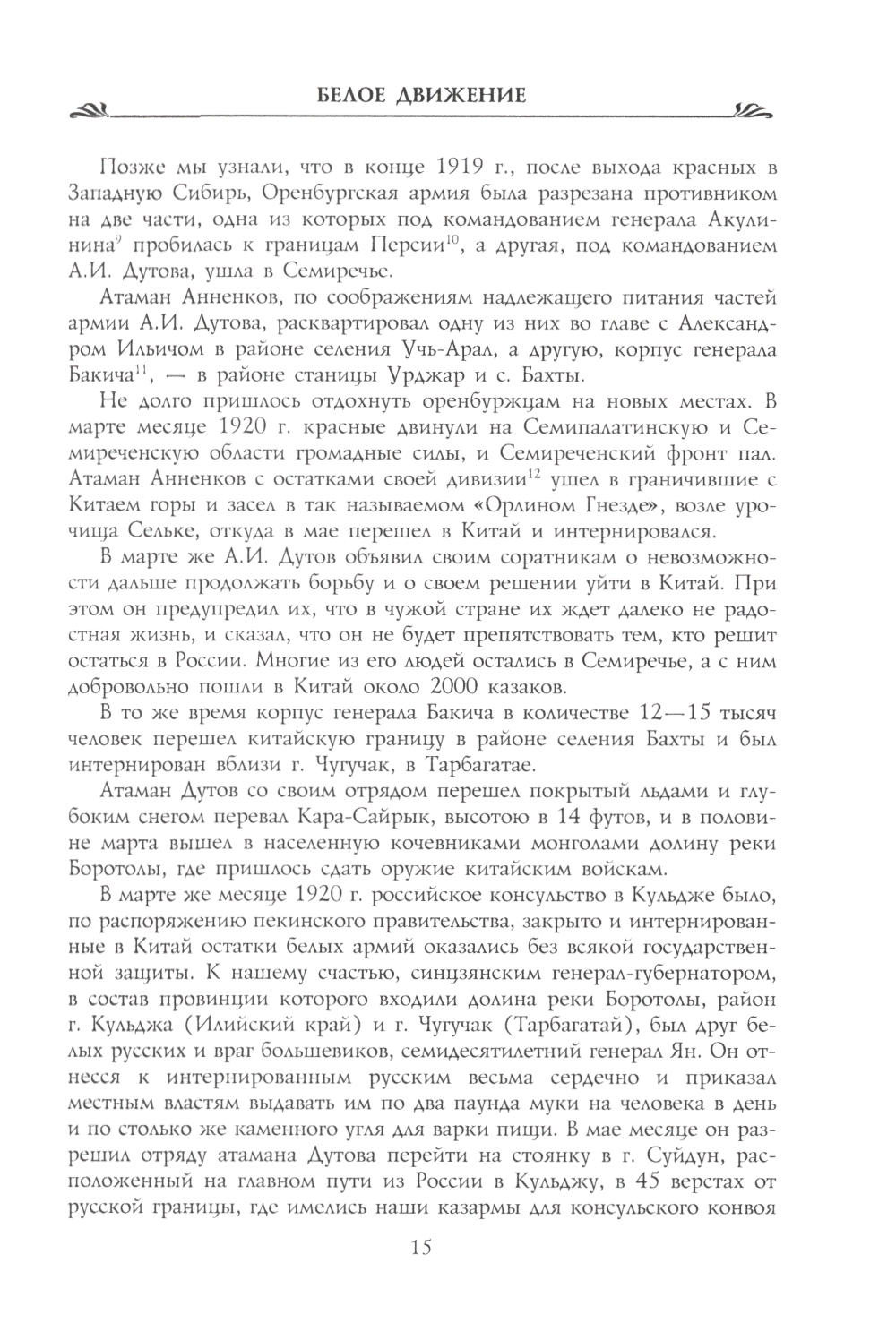 Настоящая, 25-я, книга подсерии «Белое движение» посвящена описанию белых воинских частей, которые после завершения боевых действий на территории исторической России были вынуждены отступить в Монголию и Китай. Большое внимание уделено трагическим судьбам таких героев Белого движения, как генералы А. С. Бакич, А. И. Дутов, Р. Ф. Унгерн-Штернберг и Б. В. Анненков. Подробно описана почти 20-летняя история Шанхайскогосского полка и его офицерского состава. Книга снабжена обширными и впервые публикуемыми комментариями, содержащими несколько сот ранее неизвестных биографических справок об авторах и героях очерков. Книга входит в выпускаемую издательством «Центрполиграф» серию под общим названием «Россия забытая и неизвестная». Как и вся серия, она рассчитана на широкий г читателей, интересующихся отечественной историей, а также на государственных и общественно-политических деятелей, ученых, причастных к формированию новых духовных ценностей возрождающейся России.| Издательство | Центрполиграф |