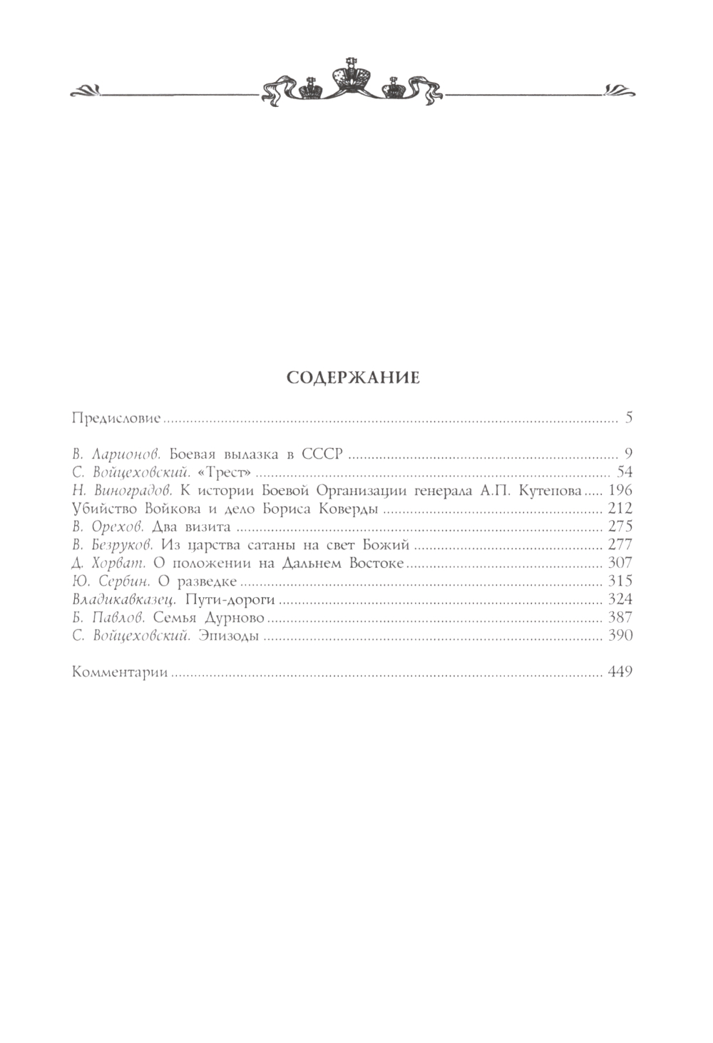 Настоящая, 26-я, книга подсерии «Белое движение» посвящена борьбесской военной эмиграции против советского режима в 20-30-х годах, то есть после завершения боевых действий на территории исторической России. В 1924 г.сская армия на чужбине была преобразована всский Обще-Воинский Союз (РОВС), и в практике антисоветской борьбы на первое место выдвинулась засылка в СССР небольших боевых пп. До 2-й Мировой войны лозунг «Кубанский поход продолжается!» владел умами большинства офицеров-эмигрантов, и большевистская разведка считала борьбу ссской военной эмиграцией главным направлением своей деятельности. Значительное место в книге уделено описанию известной операции «Трест», но со стороны белых, и истории Боевой Организации генерала А.П. Кутепова. Особый интерес представляет и описание дела Б. Коверды, убившего на перроне Варшавского вокзала советского дипломата Войкова.| Издательство | Центрполиграф |