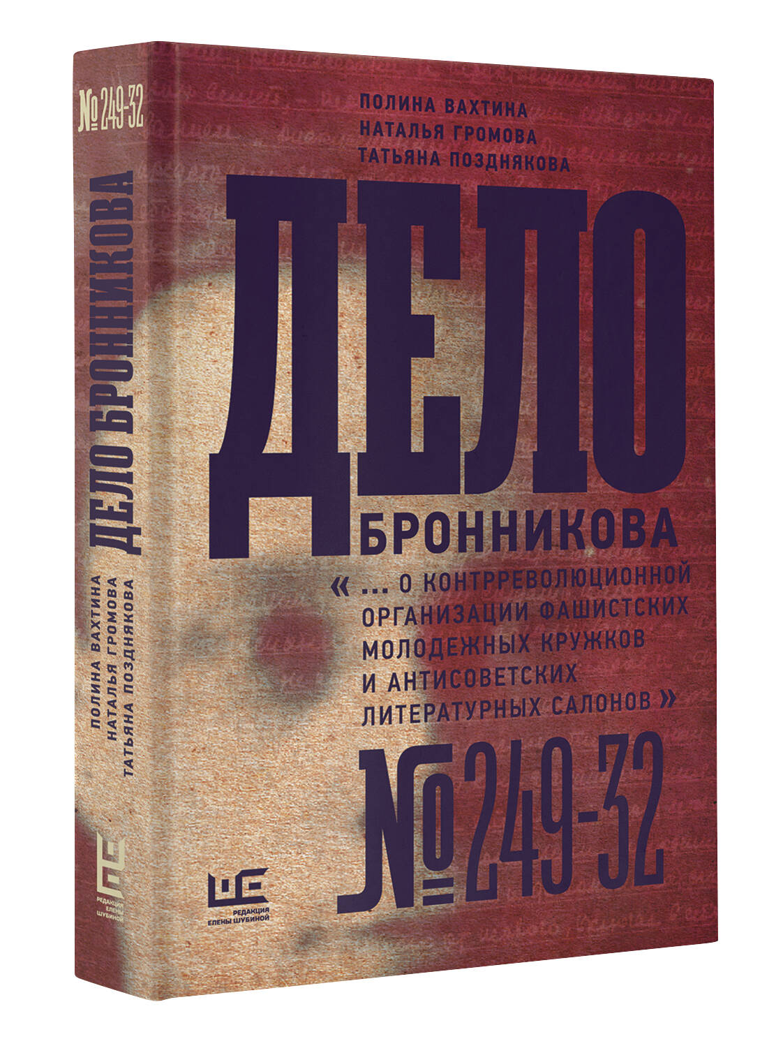 "Дело Бронникова" - книга-расследование. Она сложилась из пятитомного следственного дела 1932 года. Среди обвиняемых - переводчик М.Л. Лозинский, лингвист Н.Н. Шульговский, киновед Н.Н. Ефимов, художник В.А. Власов. Но имена других сегодня никому ничего не говорят. Пропали их сочинения, статьи, стихи, записки, письма, даже адреса. А люди эти были очень талантливы: А.В. Рейслер, П.П. Азбелев, А.А. Крюков, М.Н. Ремезов, М.Д. Бронников… - ленинградские литераторы и искусствоведы. Авторы собирали информацию по крупицам в официальных и частных архивах и пытались увидеть живых людей, стоящих за найденными материалами этого забытого дела. Об авторах: Полина Вахтина (1948-2017) - сотрудник Публичной библиотеки Санкт-Петербурга (ныне Российская национальная библиотека), автор статей и докладов. Занималась архивом Публички, ее историей, подготовкой дневников и воспоминаний ХХ века. Именно Полине Вахтиной принадлежит идея создания этой книги. Наталья Громова - прозаик, историк советской литературы, ведущий научный сотрудник Государственного Литературного музея. Автор книг "Узел. Поэты. Дружбы. Разрывы. Из литературного быта конца 1920-х-1930-х годов", "Распад. Судьба советского критика: в 40-е-50-е годы", "Ключ. Последняя Москва", "Ольга Берггольц: Смерти не было и нет" и др. Татьяна Позднякова - искусствовед, старший научный сотрудник Музея Анны Ахматовой в Фонтанном Доме. Составитель и соавтор книг "Петербург Ахматовой: Владимир Георгиевич Гаршин", ""И зачем нужно было столько лгать?" Лагерная переписка Л.Н. Гумилева", ""И это было так". Анна Ахматова и Исайя Берлин" и др.| Издательство | ИЗДАТЕЛЬСТВО "АСТ" |
