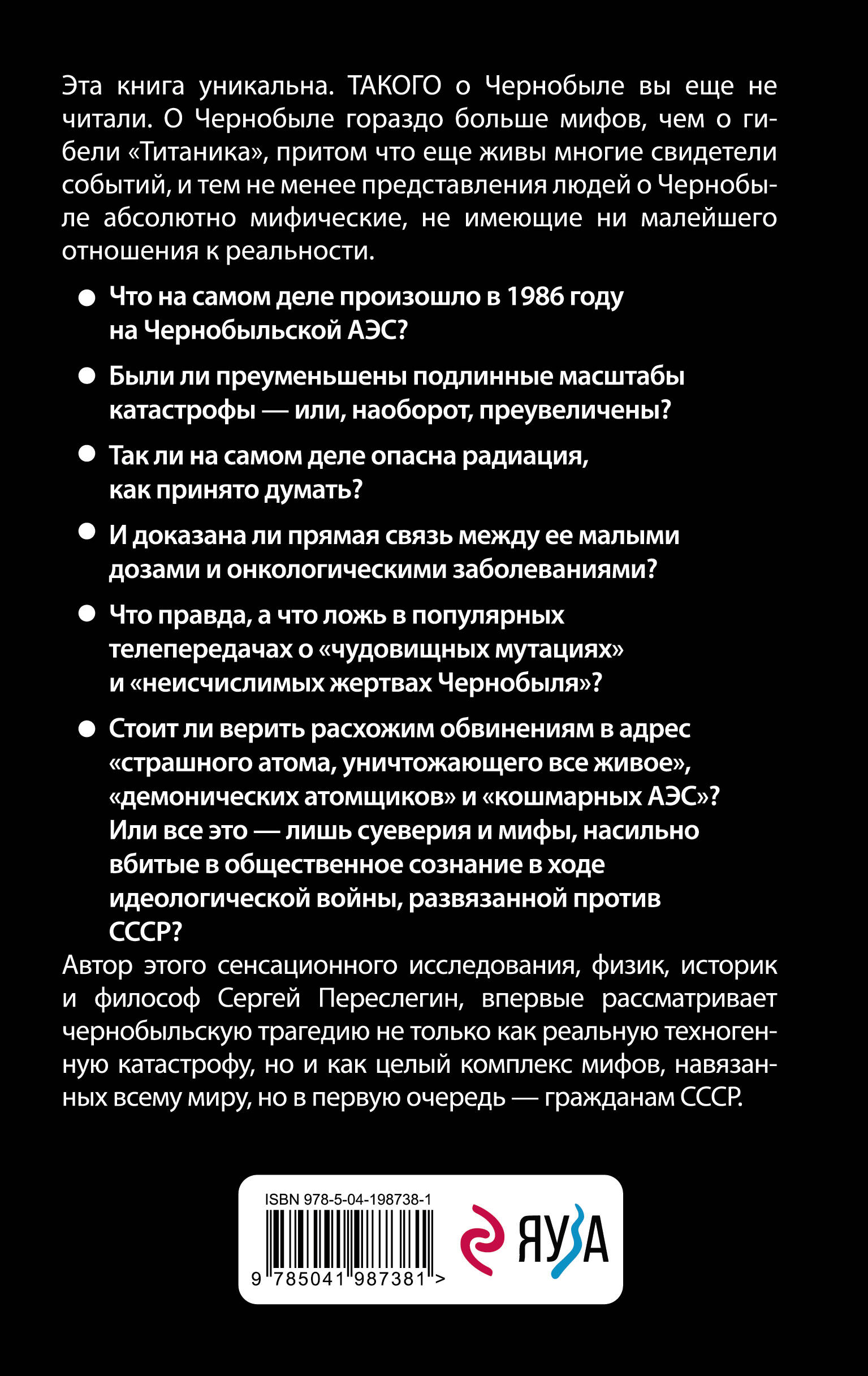 Эта книга уникальна. ТАКОГО о Чернобыле вы еще не читали. О Чернобыле гораздо больше мифов, чем о гибели «Титаника», при том, что еще живы многие свидетели событий, и тем не менее представления массы людей о Чернобыле абсолютно мифические, не имеющие ни малейшего отношения с реальностью. Что на самом деле произошло в 1986 году на Чернобыльской АЭС? Были ли приуменьшены подлинные масштабы катастрофы - или, наоборот, преувеличены? Так ли на самом деле опасна радиация, как принято думать? И доказана ли прямая связь между ее малыми дозами и онкологическими заболеваниями? Что правда, а что ложь в популярных телепередачах о «чудовищных мутациях» и «неисчислимых жертвах Чернобыля»? Стоит ли верить расхожим обвинениям в адрес «страшного атома, уничтожающего все живое», «демонических атомщиков» и «кошмарных АЭС»? Или все это - лишь суеверия и мифы, насильно вбитые в общественное сознание в ходе идеологической войны, развязанной против СССР? Автор этого сенсационного исследования, физик, историк и философ Сергей Переслегин, впервые рассматривает чернобыльскую трагедию не только как реальную техногенную катастрофу, но и как целый комплекс мифов, навязанных всему миру, но в первую очередь - гражданам СССР.| Издательство | ООО "Издательство "Эксмо" |