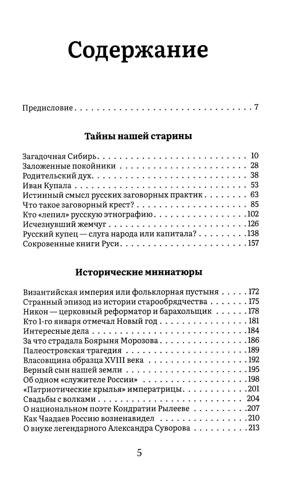 Александр Владимирович Пыжиков - русский историк, который в представлении не нуждается. Его научные труды и глубокие исследования получили заслуженное признание учёных коллег и читателей, интересующихся уже известной и пока скрытой историей нашего государства. Автор книги ставит такие вопросы, о которых читатели, возможно, и не задумывались, ведь историки давно дали на них «правильные» ответы. Но, может быть, стоит посмотреть критически на известные, казалось бы, факты и познакомиться с документами, которые долгое время были случайно или намеренно забыты? Здесь мы узнаем о глубинном смысле заговоров, о практической ценности травников, о существовании загадочных трепетников и громовников, разгадаем секрет ловцов жемчуга в русских реках, вспомним ритуалы праздника Ивана Купалы и раскроем их тайные смыслы. Кроме того, автор отдаёт дань уважения истинным патриотам Отечества и рассказывает о неблаговидных поступках деятелей, желавших навредить нашему государству. Книга будет интересна и полезна широкому кругу читателей: историкам, преподавателям школ и вузов, учащимся, интересующимся обычаями русского народа в том виде, в каком они существовали и были известны издавна, до переписывания источников представителями власти и церкви.| Издательство | Наше Завтра |