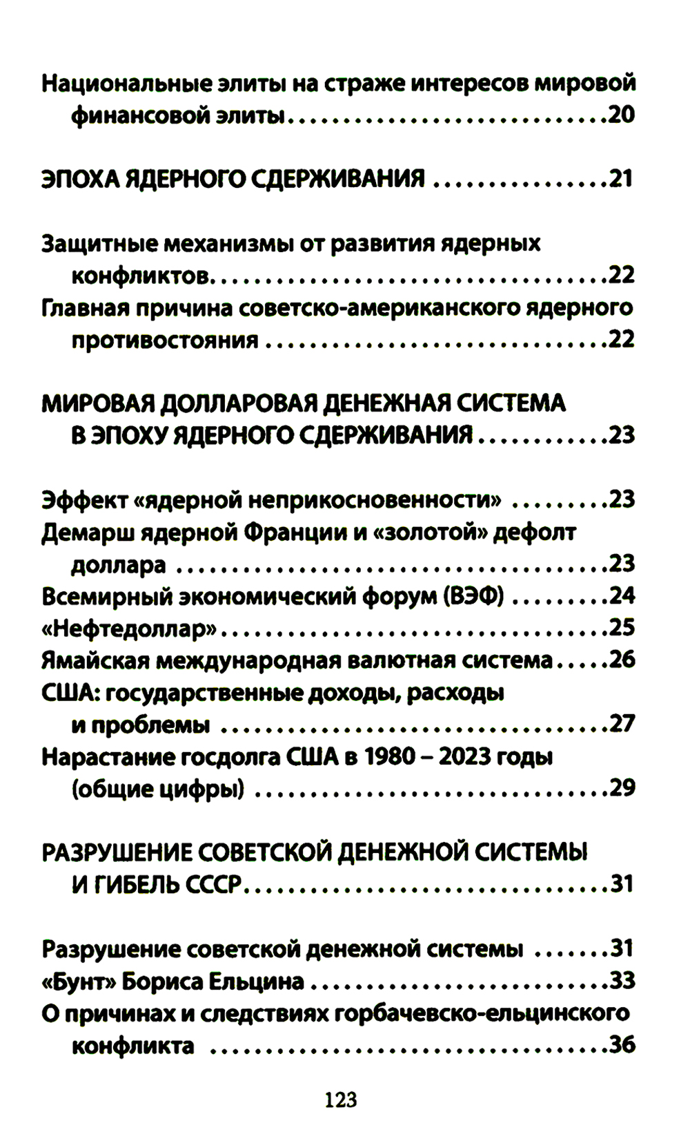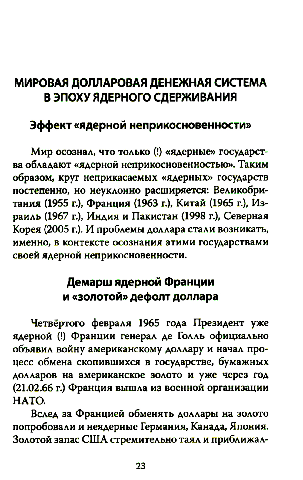 В своей книге автор в предельно сжатой форме попытался изложить содержание нескольких толстых книг, написанных в процессе анализа знаковых исторических событий XX-XXI веков и объясняющих их причины и следствия. Насколько ему это удалось - судить читателю. Среди главных тем книги: Мировая долларовая денежная система в эпоху ядерной монополии США; Мировая долларовая денежная система в эпоху ядерного сдерживания; Разрушение советской денежной системы и гибель СССР; Начало и особенности развития послесоветского мира; О логике военных конфликтов нашего времени и др. Книга рассчитана на широкий круг читателей.| Издательство | Родина |