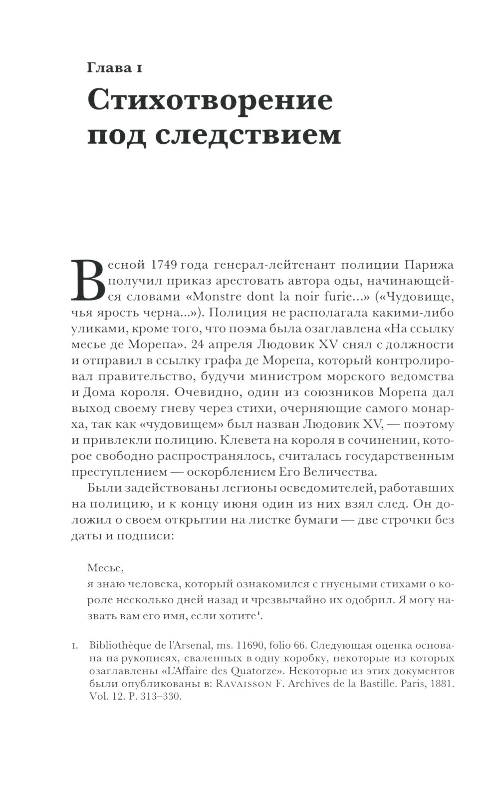 Книга профессора Гарвардского университета Роберта Дарнтона «Поэзия и полиция» сочетает в себе приемы детективного расследования, исторического изыскания и теоретической рефлексии. Ее сюжет связан с вторичным распутыванием обстоятельств одного дела, однажды уже раскрытого парижской полицией. Речь идет о распространении весной 1749 года крамольных стихов, направленных против королевского двора и лично Людовика XV. Пытаясь выйти на автора, полиция отправила в Бастилию четырнадцать представителей образованного сословия - студентов, молодых священников и адвокатов. Реконструируя культурный контекст, стоящий за этими стихами, Роберт Дарнтон описывает злободневную, низовую и придворную, поэзию в качестве важного политического медиа, во многом определявшего то, что впоследствии станет называться «общественным мнением». Пытаясь вслед за французскими сыщиками XVIII века - распутать цепочку распространения такого рода стихов, американский историк вскрывает роль устных коммуникаций и социальных сетей в эпоху, когда Старый режим уже изживал себя, а Интернет еще не был изобретен.| Издательство | Новое литературное обозрение |