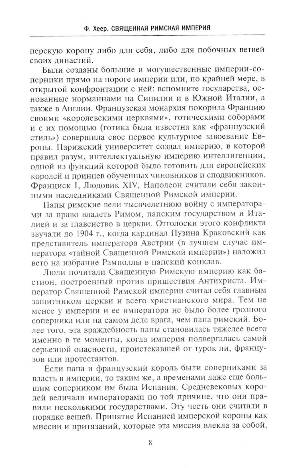 Выдающийся австрийский писатель и публицист Фридрих Хеер прослеживает тысячелетнюю историю Священной Римской империи, начиная с коронации Карла Великого в 800 г. и заканчивая упразднением империи Францем II Габсбургом в ходе Наполеоновских войн. Автор прослеживает, как сменялись правящие династии, перемещались центры силы и с ними границы многонационального государства, описывает многовековое противостояние с Ватиканом, странами Запада и Востока, а также указывает на высокую степень политической и религиозной терпимости и неизменное стремление ее правителей к созданию объединенной Европы.| Издательство | Центрполиграф |