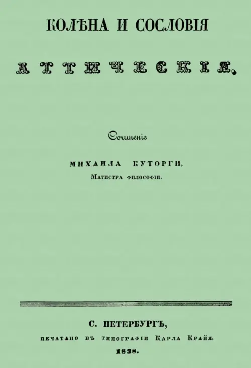 Репринт с издания. СПб. , 1838. Эта книга посвящена разбору племенного устройства в древней Греции в ранний период её истории. Михаил Семёнович Куторга (1809-1886) - российский историк-эллинист, зачинатель русского профессионального антиковедения, первый самостоятельный русский исследователь древнегреческой истории. Профессор истории С. -Петербургского (1844-1869) и Московского (1869-74) университетов, член-корреспондент Петербургской АН (1848). В своей научной деятельности особое внимание уделял истории Афин V-IV веков до н. э. , в частности времени становления и развития афинской демократии.