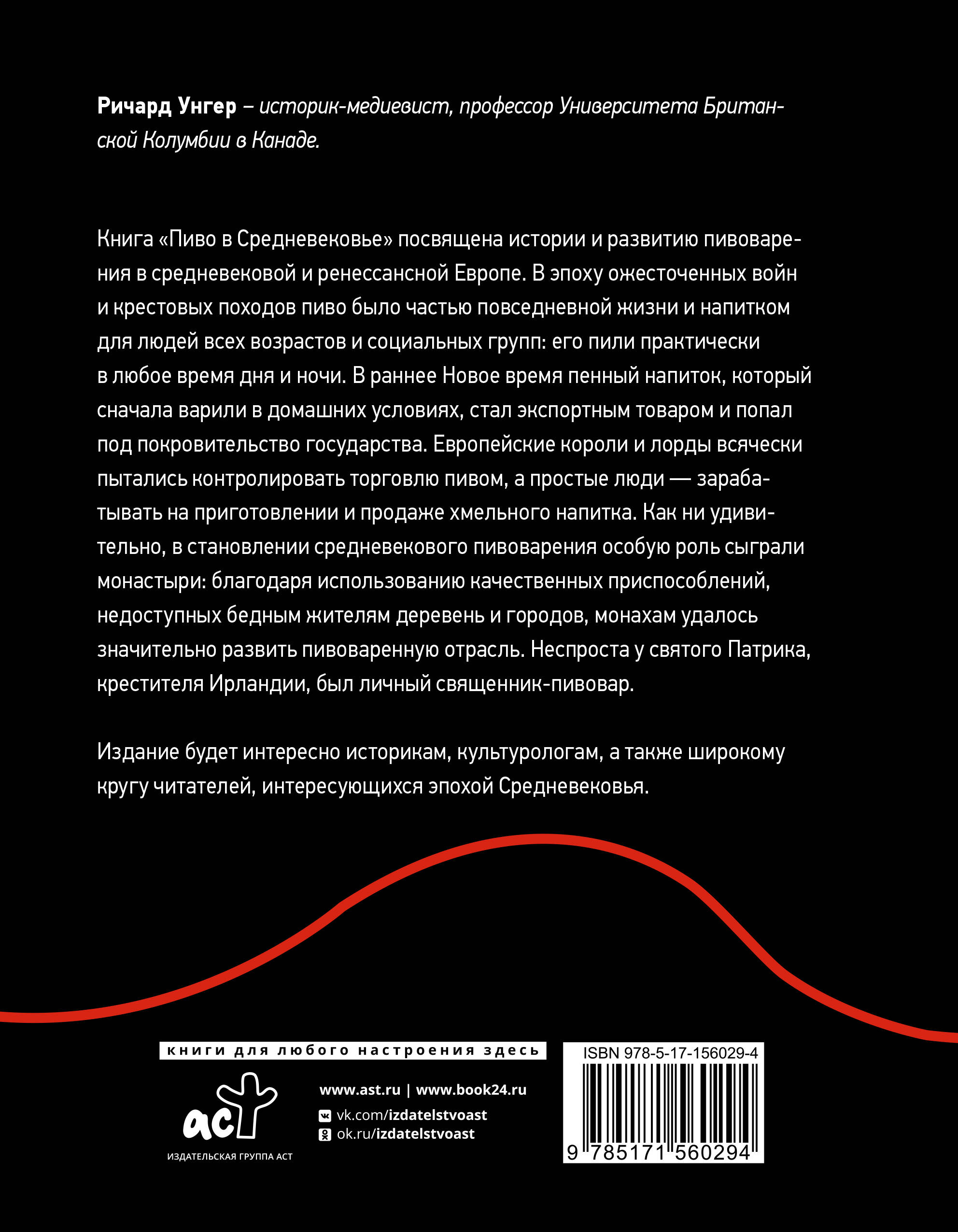 Ричард Унгер - историк-медиевист, профессор Университета Британской Колумбии в Канаде. Книга "Пиво в Средневековье" посвящена истории и развитию пивоварения в средневековой и ренессансной Европе. В эпоху ожесточенных войн и крестовых походов пиво было частью повседневной жизни и напитком для людей всех возрастов и социальных групп: его пили практически в любое время дня и ночи. В раннее Новое время пенный напиток, который сначала варили в домашних условиях, стал экспортным товаром и попал под покровительство государства. Европейские короли и лорды всячески пытались контролировать торговлю пивом, а простые люди - зарабатывать на приготовлении и продаже хмельного напитка. Как ни удивительно, в становлении средневекового пивоварения особую роль сыграли монастыри: благодаря использованию качественных приспособлений, недоступных бедным жителям деревень и городов, монахам удалось значительно развить пивоваренную отрасль. Неспроста у святого Патрика, крестителя Ирландии, был личный священник-пивовар. Издание будет интересно историкам, культурологам, а также широкому кругу читателей, интересующихся эпохой Средневековья.| Издательство | ИЗДАТЕЛЬСТВО "АСТ" |