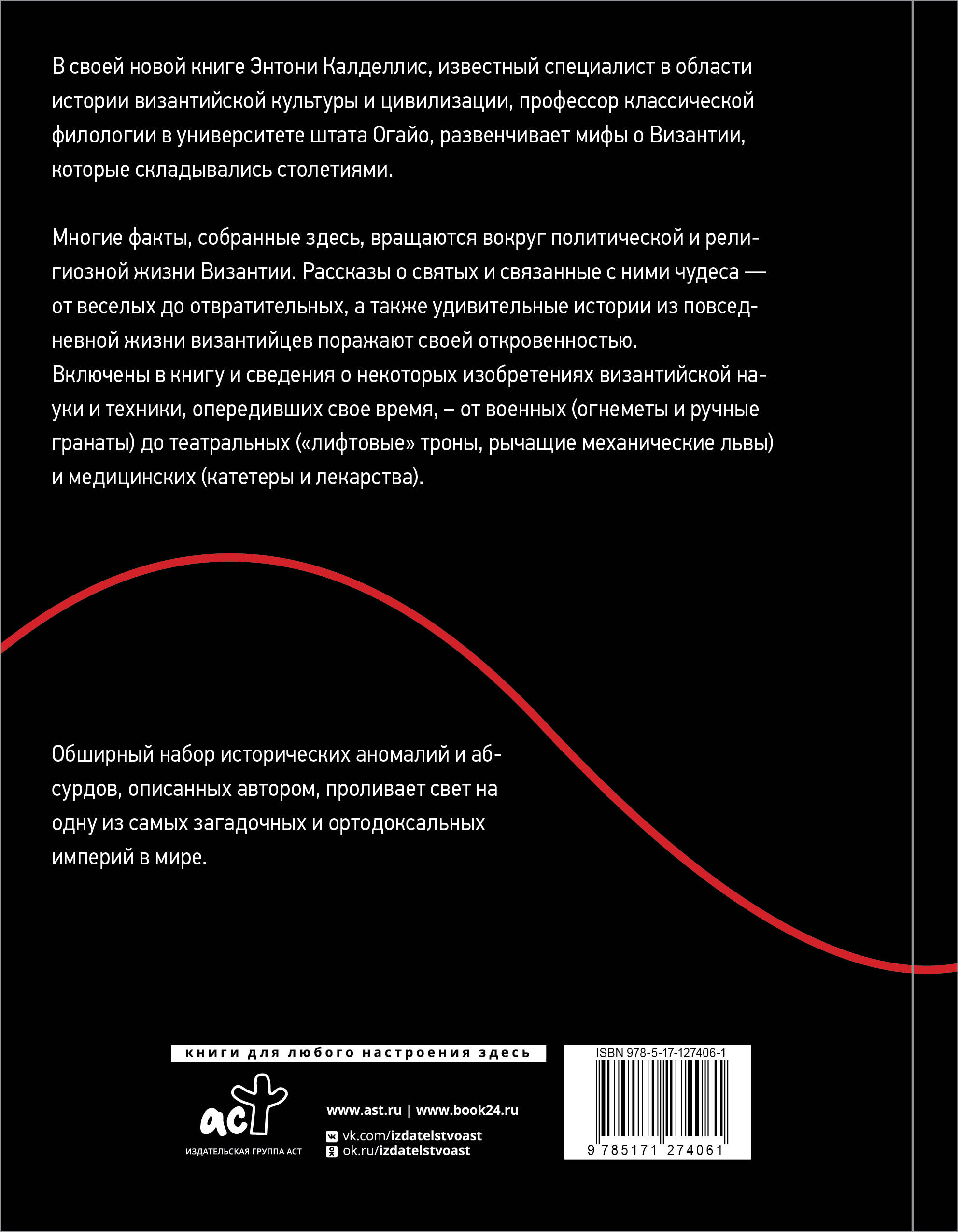 Новая книга известного амеркианского византолога Энтони Калделлиса "Византийская кунсткамера. Неортодоксальные факты из жизни самой православной империи". Откровенные удивительные истории из повседневной жизни византийцев. Рассказы о святых и их чудесах.| Издательство | Издательство "АСТ" |