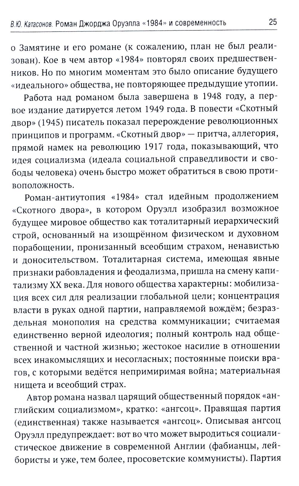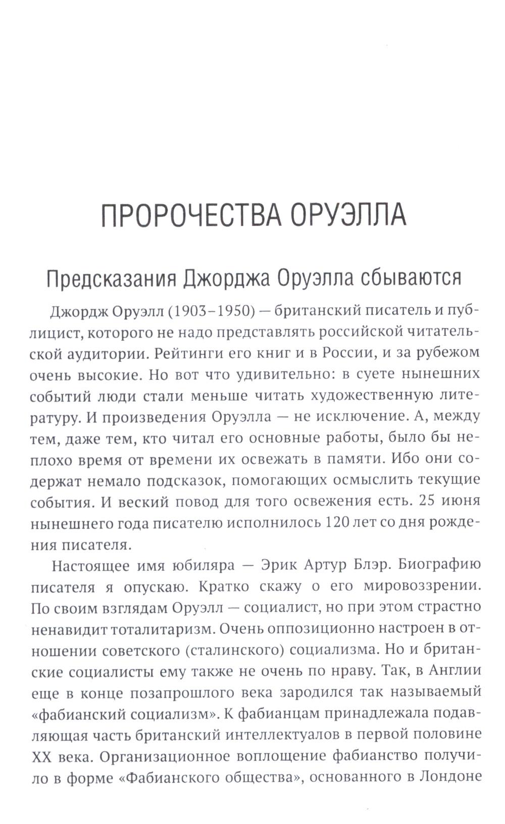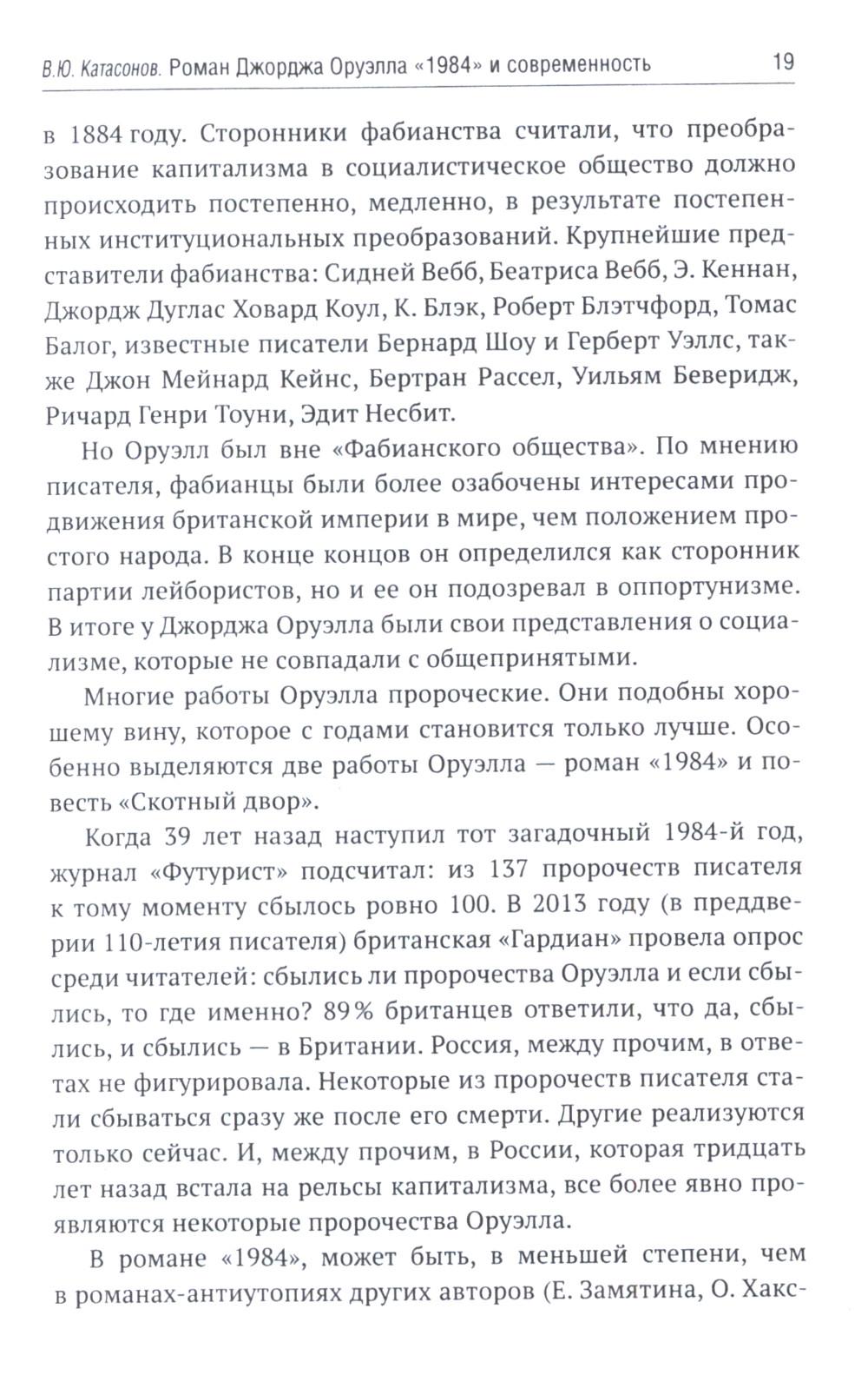 В 1949 году вышел в свет роман Дж. Оруэлла «1984», который казался современникам далеким от реальности, почти фантастическим. Но по прошествии 75-лет можно с уверенностью утверждать, что писатель каким-то мистическим образом предугадал развитие событий в мире и антиутопия стала прозой жизни XXI-века. Данная книга представляет собой сборник статей В. Ю. Катасонова, публициста и экономиста, посвященных пророческому роману «1984». Здесь можно встретить предсказания, которые уже сбылись или начинают сбываться в наше время, познакомиться с основными догматами и антропологией тоталитарного государства, вспомнить о кризисе современной науки и уничтожении классической литературы, поразмышлять об изменении человеческого сознания и поведения с помощью предельного упрощения языка, узнать о современных технологиях слежения за человеком (даже за его мыслями). Актуальность вопросов, волновавших людей в середине XX-века, подтверждают события последних десятилетий в России и мире.| Издательство | Наше Завтра |