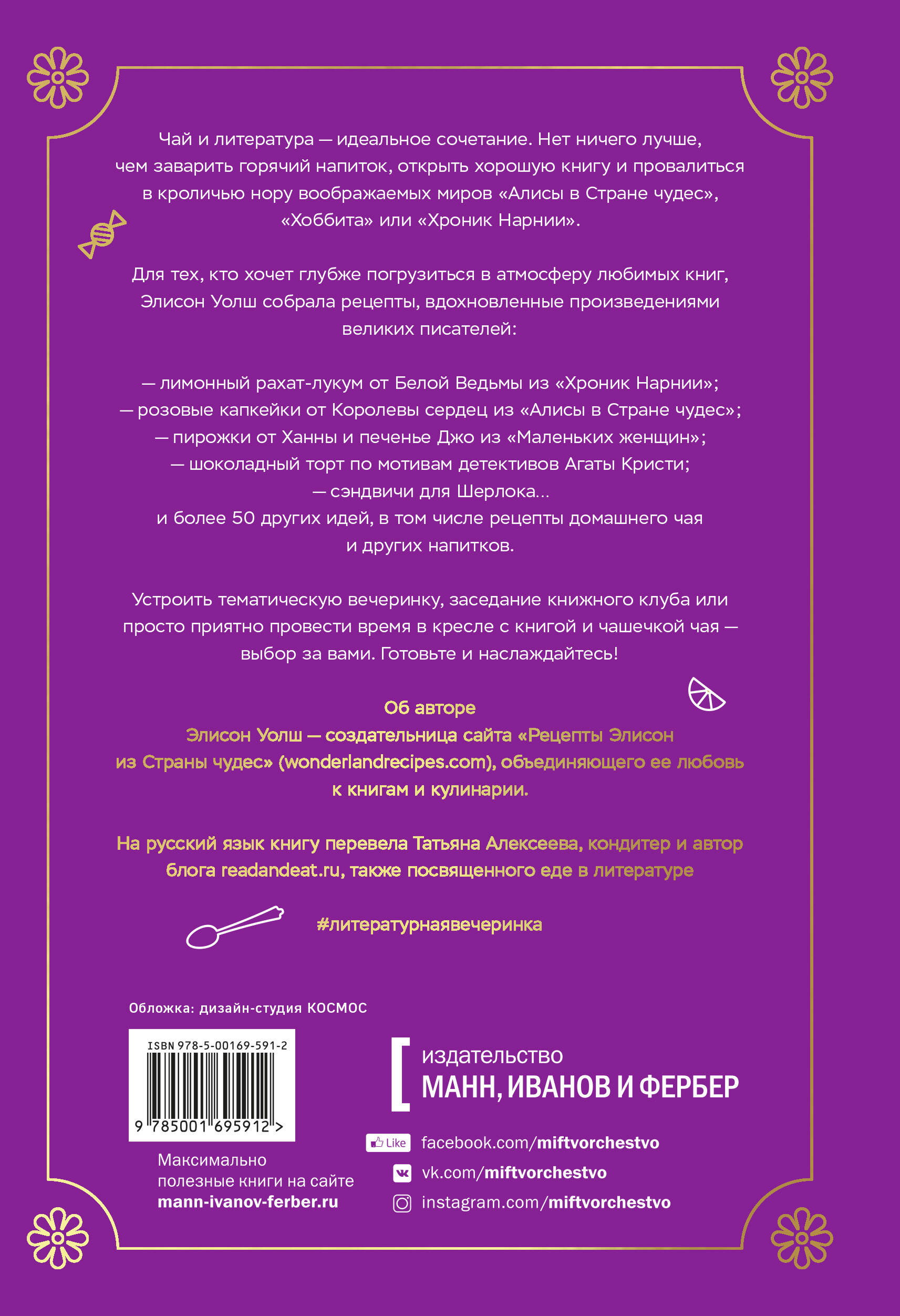 Книга, адресованная любителям литературы и чаепитий во всем мире. Особенно поклонникам Джейн Остин, Марка Твена, Агаты Кристи, Роберта Стивенсона, Уильяма Шекспира, Чарльза Диккенса и других великих писателей. Вы когда-нибудь задумывались, почему неотъемлемой частью многих великих книг становятся еда и напитки? Почему мы так часто видим, как герои делят стол с семьей, друзьями или случайными знакомыми? Еда способна поведать нечто особенное о наших любимых героях, героинях и персонажах-проказниках. "Литературная вечеринка" переворачивает наше представление о кулинарных книгах на литературную тему. Здесь не просто собраны рецепты, вдохновленные классическими произведениями. Здесь вы найдете старательно продуманные и специально отобранные блюда, идеально подходящие для чаепитий. 55 рецептов закусок, десертов и напитков: горячий шоколад Белой Ведьмы из "Хроник Нарнии", трюфели с мятным ликером для Эркюля Пуаро, бутербродные бабочки "Алиса в Зазеркалье". А еще здесь - рецепты какао, пунша и уникальных чайных смесей домашнего приготовления. Они добавят застолью еще больше тепла, вкуса и глубины. Для кого эта книга: Для тех, кто любит готовит и ищет что-то новенькое. Для тех, кто любит читать. От автора: Вступление к книге написала современная американская поэтесса Сара Летурно. "... Еда и напитки действительно играют важную роль в литературе. Как большой любитель чтения, я всегда это ценила. Спасибо бессмертным историям, таким как "Хоббит, или Туда и Обратно" Джона Рональда Руэла Толкина или "Кентерберийские рассказы" Джеффри Чосера, а также более свежим, будь то "Шоколад на крутом кипятке" Лауры Эскивель или "Голодные игры" Сьюзен Коллинз, - я сбилась со счета, сколько раз облизывалась на предлагаемые в них блюда, восхищалась разговорами, спорами и последующим неловким молчанием. Даже мое вечернее чтение обязательно сопровождается чем-то съестным: рядом должна стоять чашка свежезаваренного чая, иначе ритуал не будет соблюден. Налейте себе чашечку чая и посмотрите, какие блюда вас заинтересуют. Вероятно, что-нибудь из книг, которые вы читали в детстве и до сих пор считаете лучшими? Опробуйте такие рецепты в первую очередь, чтобы предаться ностальгии и вспомнить, за что вы так полюбили эти истории. И кто знает, может, труд Элисон вдохновит вас на полноценное тематическое чаепитие - с декорациями, нарядами и, конечно, меню родом из самых памятных книг прошлого".| Издательство | МАНН, ИВАНОВ И ФЕРБЕР ООО |