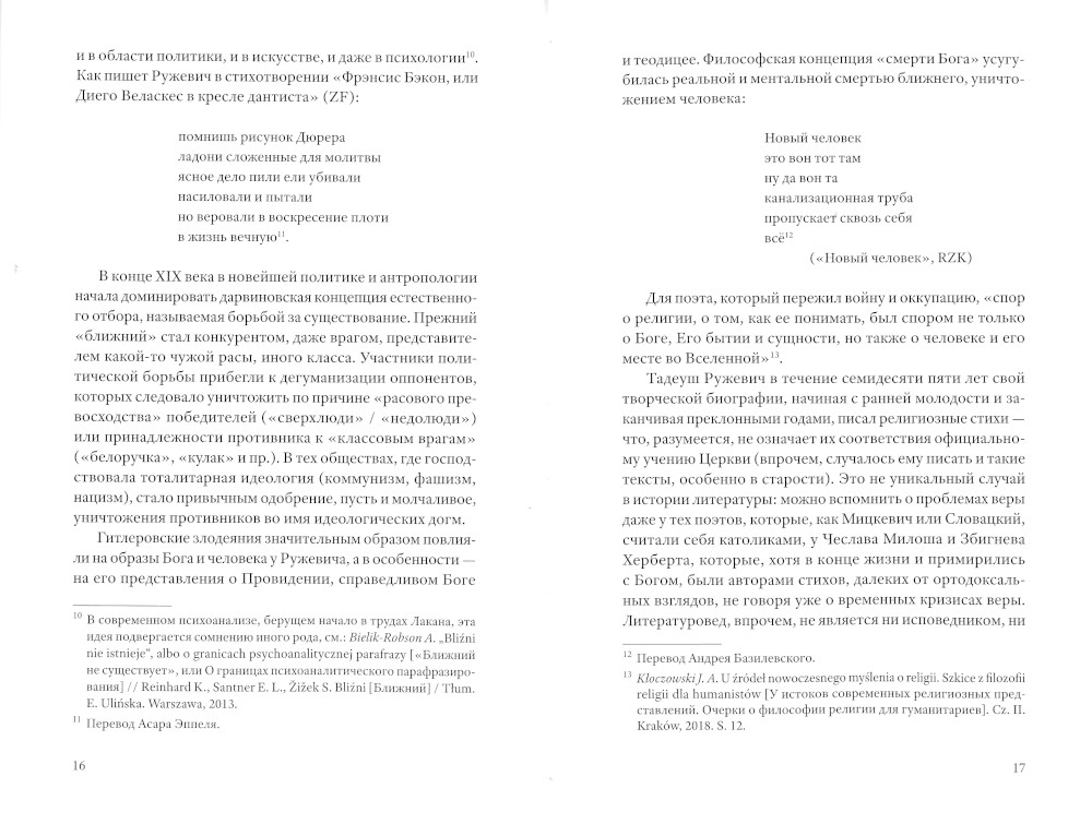 Поэзию Тадеуша Ружевича (1921-2014) большинство исследователей воспринимает как атеистическую или интерпретирует в духе постмодернизма. Польский литературовед Юзеф Мария Рушар представляет свое видение, основанное не только на глубоком изучении творчества выдающегося поэта, но и на знаниях в области философии, католического богословия, христианской символики, и прежде всего Библии. В дискуссии о возможности объективной интерпретации литературного произведения он стоит на позиции Умберто Эко, утверждая, что объективность возможна. Книга позволяет познакомиться с малоизвестными страницами биографии Ружевича, а также проследить вдумчивый анализ религиозных и, в частности, христианских мотивов в его творчестве. В ней читатель найдет и переводы стихов Ружевича, многие из которых публикуются впервые. Книга издана в рамках сотрудничества Издательства Ивана Лимбаха и Института литературы, учрежденного в 2019 году министром культуры и национального наследия Республики Польша. Одной из основных целей института является популяризация высокой польской культуры и литературы.| Издательство | Изд. Ивана Лимбаха |