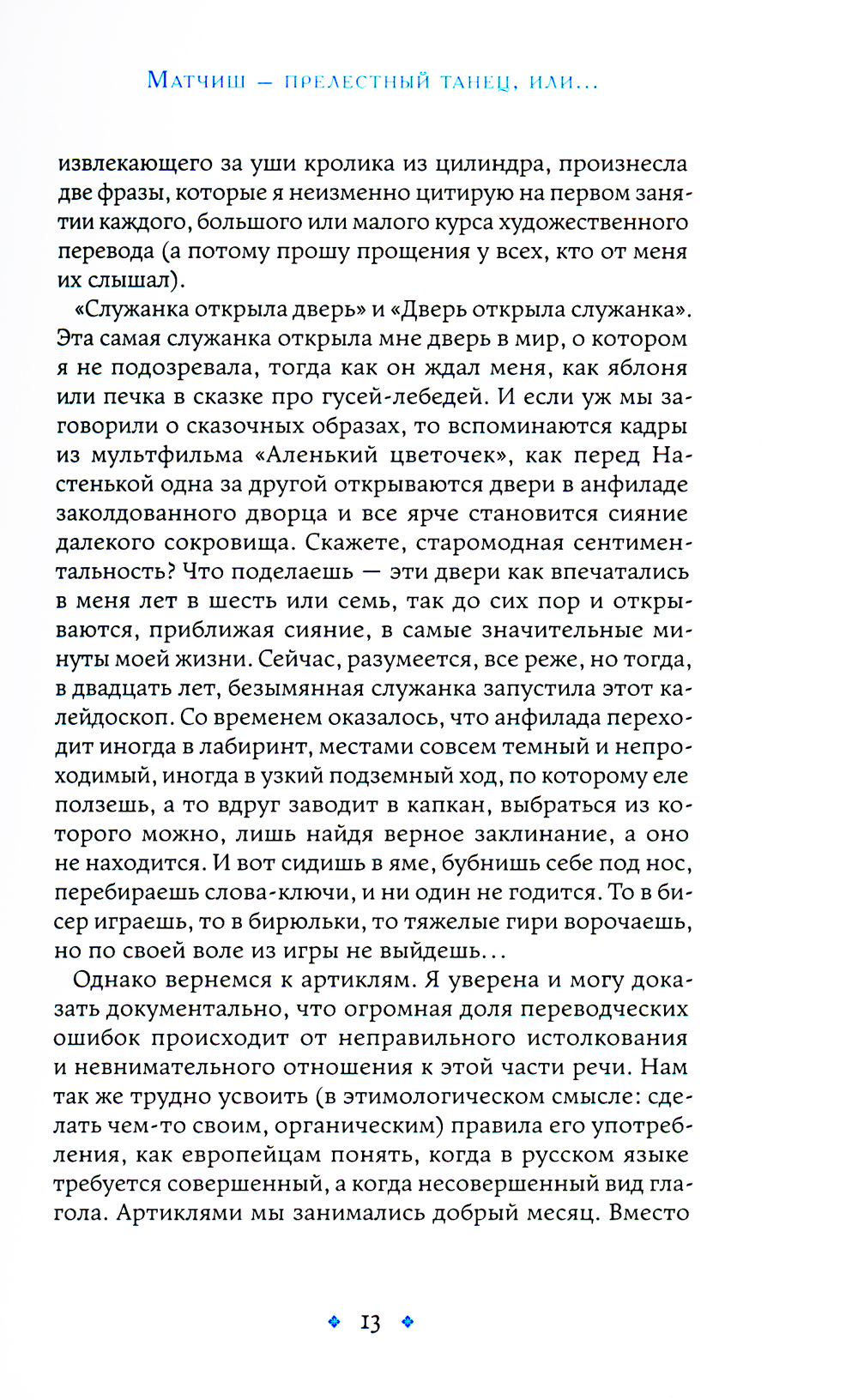 Наталья Мавлевич - переводчица франкоязычной литературы, филолог, лауреат премий имени Мориса Ваксмахера и «Мастер». Быть переводчиком значит прожить множество жизней: освоить разные профессии, побывать в далеких странах, думать и говорить, как другой человек, оставаясь при этом собой. Каждого переводимого автора нужно открыть, заглянуть внутрь, найти его слова в родном языке. О таком путешествии сквозь времена и судьбы в глубины человеческой души рассказывает в своих мемуарах Наталья Мавлевич. Отправиться в плавание с Жюлем Верном, оказаться в лапах Мальдорора, воспарить над городом с Шагалом, сыграть в абсурд с Эженом Ионеско, пройти по зеркальному лабиринту с Луи Арагоном, насладиться природой и вкусной едой с Филиппом Делермом, носить желтую звезду в оккупированном Париже с Элен Берр, путешествовать по Италии с Монтенем - всё это жизнь одного человека, пытающегося, обложившись словарями, сродниться с чужим словом. Наталья Мавлевич вспомнит университет, любимых преподавателей, семинар Лилианны Лунгиной, учителей и коллег, с которыми было так весело обсуждать форму и содержание текста, бесконечно перебирать слова, играть с ними, искать то самое - подходящее! Как в сундуке Монтеня когда то было обнаружено его «Путешествие по Италии», так и в этой книге читатель найдет приключения заядлого переводчика, честного и страстного - странника по чужому слову. Издание украшено фотографиями и гравюрами, на которых запечатлены упомянутые в книге люди и места, а также репродукциями произведений искусства, отсылающими к переведенным текстам.| Издательство | Иллюминатор |