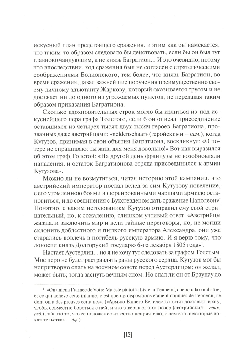 Роман Л. Н. Толстого «Война и мир» по праву относится к числу главных произведений русской классики. Но много ли исторической правды может найти в нем пытливый читатель, интересующийся не только литературой, но и историей России? Этим вопросом задается А. С. Норов - государственный деятель и писатель, министр народного просвещения в 1853-1858 годах. А. С. Норов не понаслышке знал о событиях Отечественной войны 1812 года: в чине прапорщика он принимал участие в боевых действиях, во время Бородинского сражения командовал взводом и получил тяжелое ранение. В своем труде автор развенчивает сложившиеся мифы о кампании 1805- 1807 годов и об Отечественной войне 1812 года, подробно рассматривая эпизоды из романа Л. Н. Толстого и соотнося их с важнейшими событиями этого времени.| Издательство | Проспект |