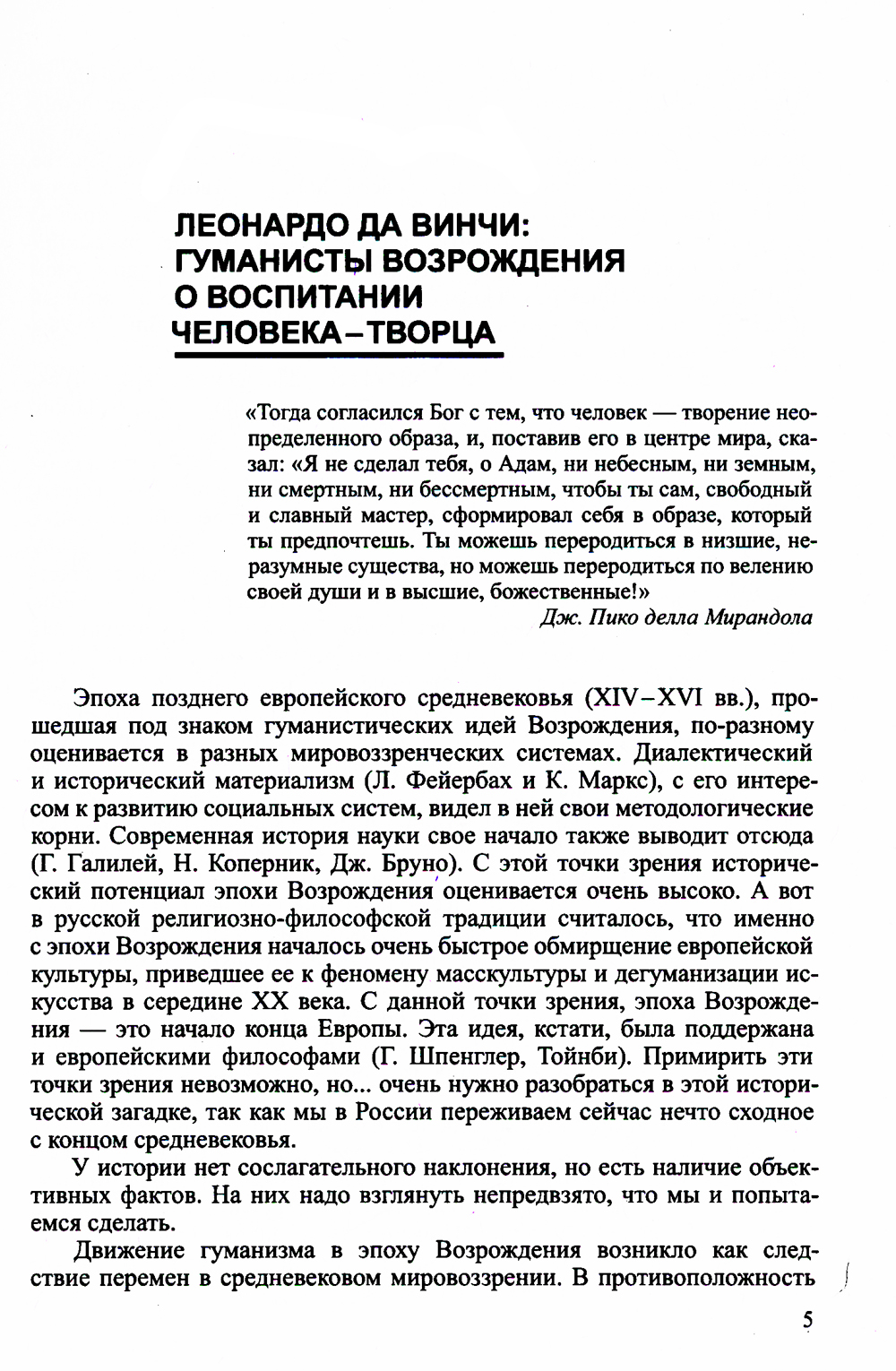 Гуманисты Возрождения о воспитании человека-творца. О раскрытии творческого потенциала личности (по трудам Леонардо Да Винчи)